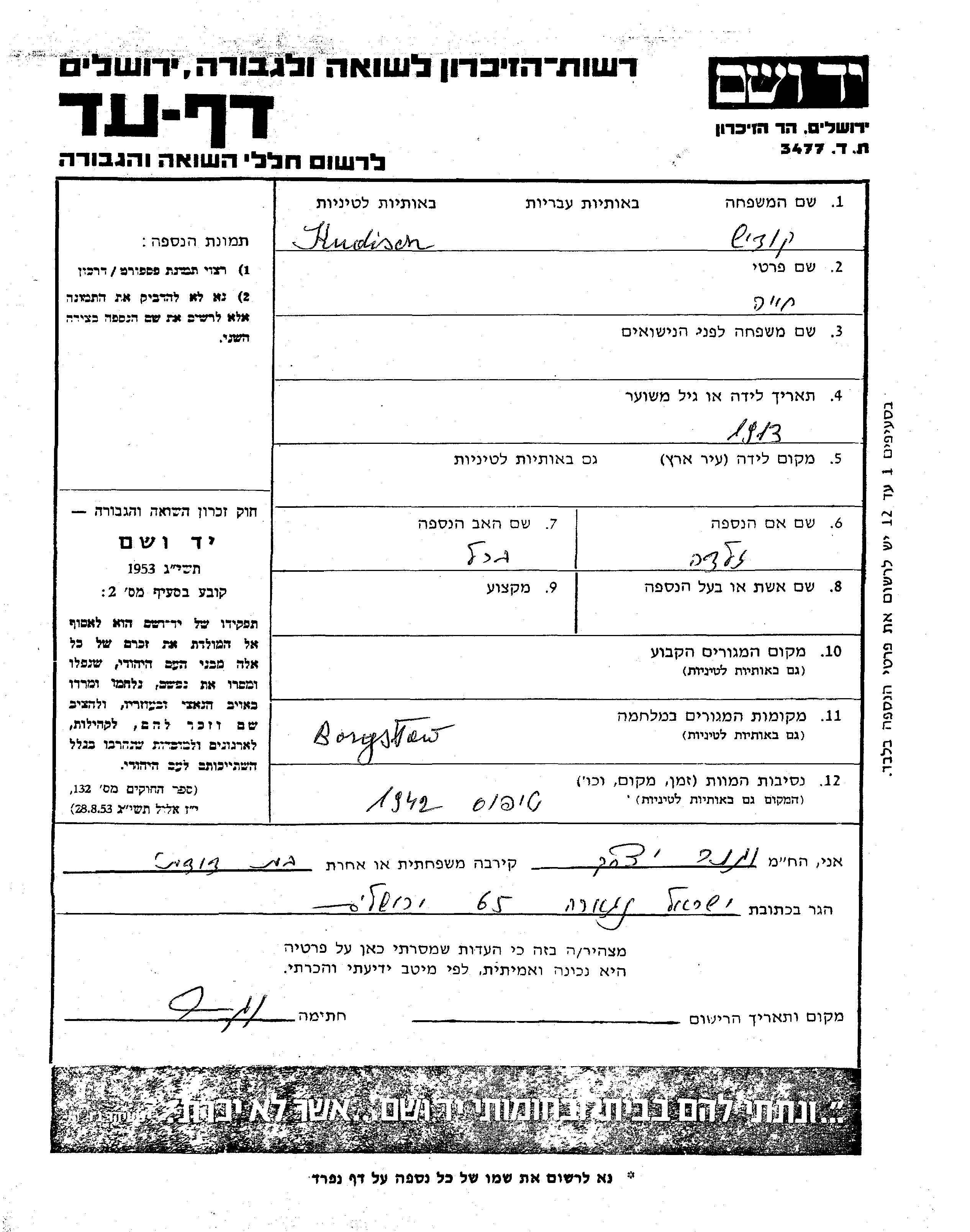 יד ושם - המפעל להנצחת השמות בדפי עד
