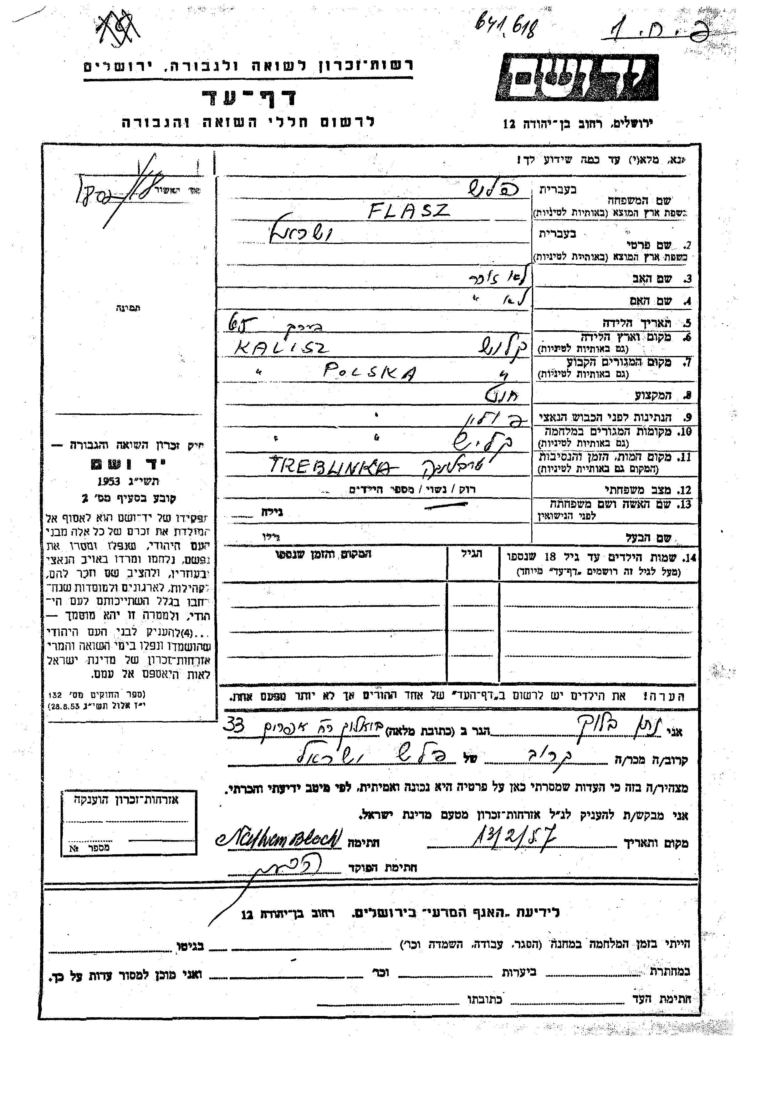 Flasz ישראל Kalisz, פולין דף-עד