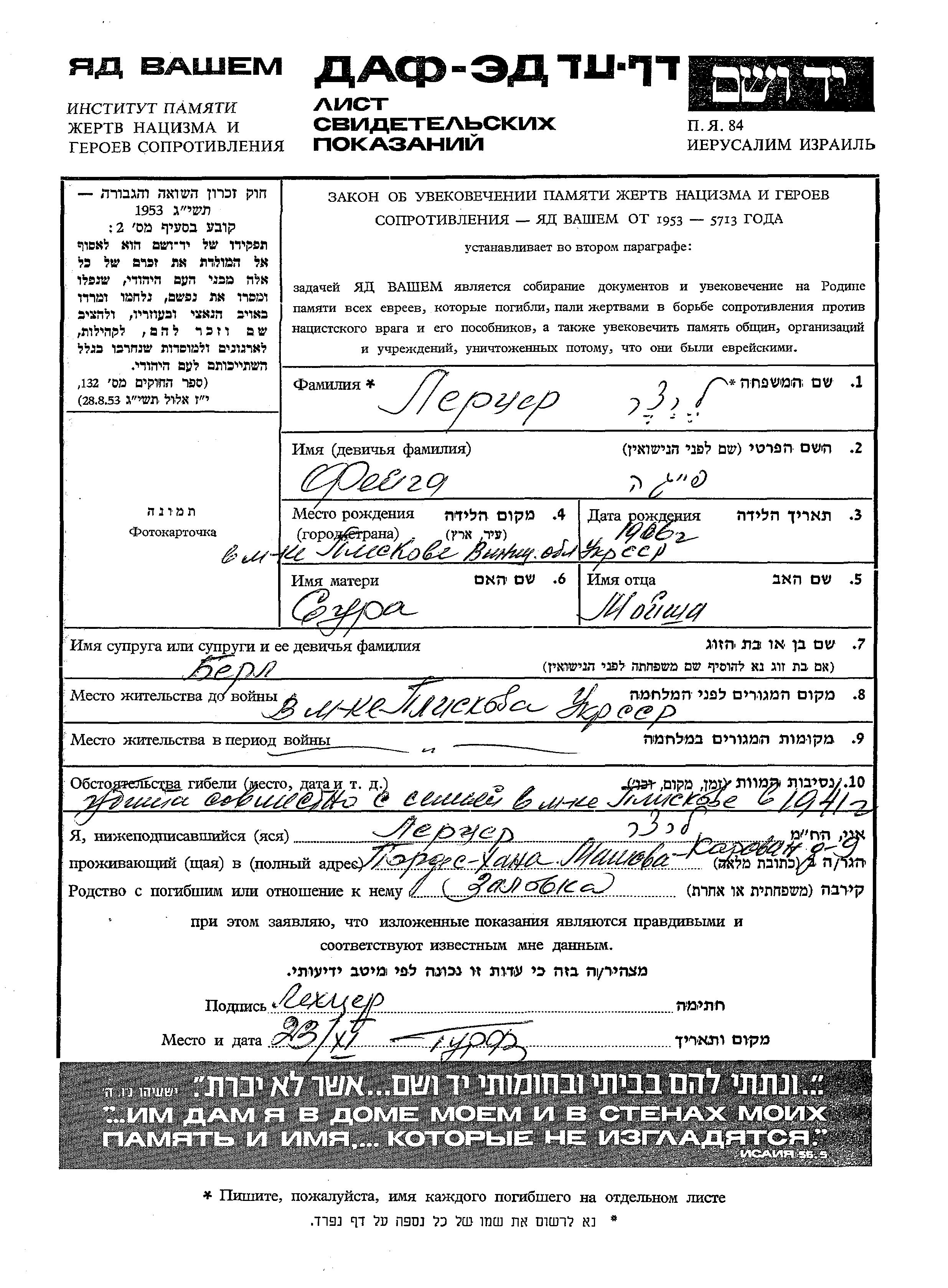 חיפוש שם מוסר דף העד. חיפוש לפי כל שם פרטי, כולל כינוי או שם חיבה