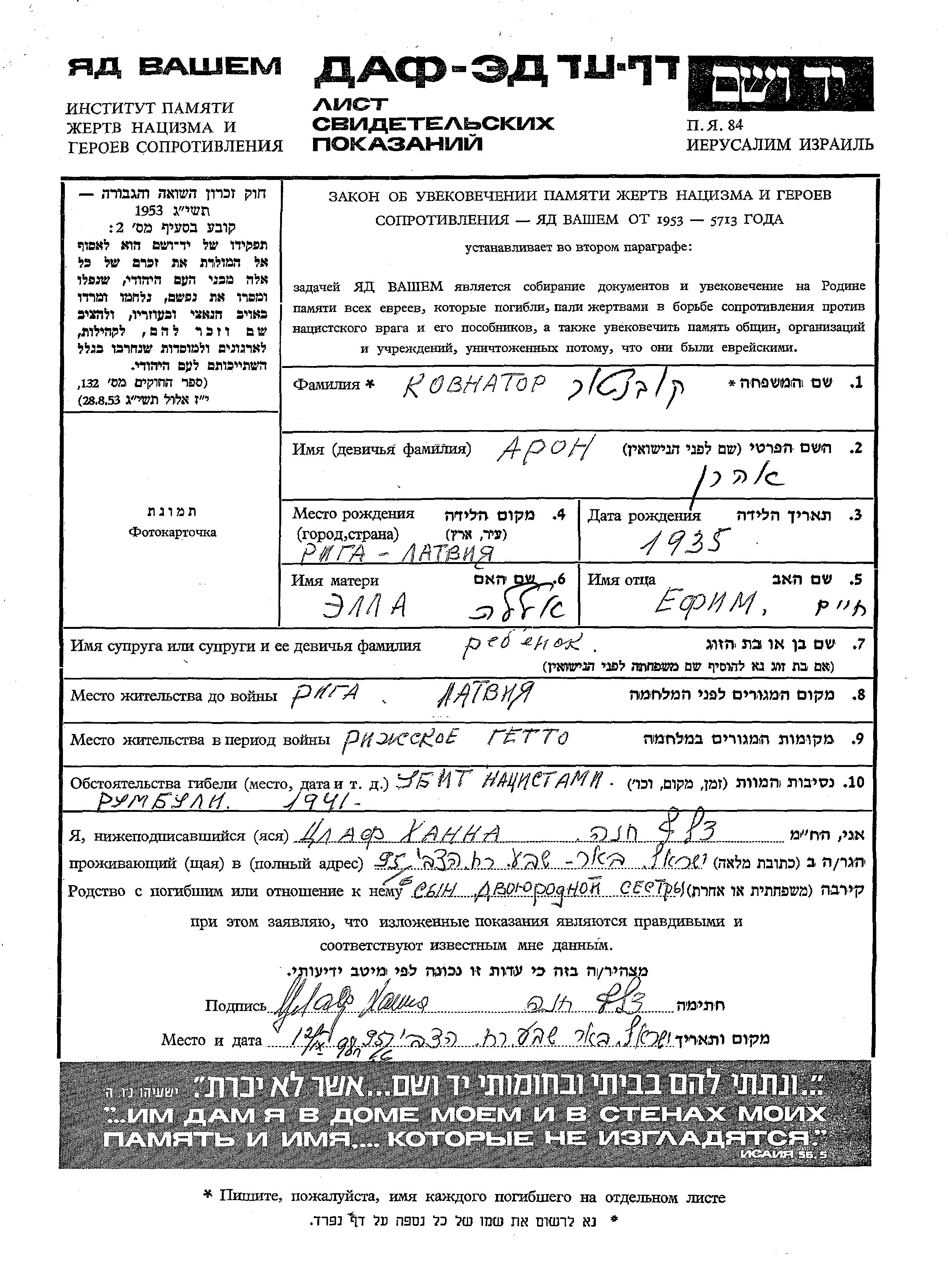 ארון קובנטור נולד בRiga שבלטביה בשנת 1935 ליפים חיים ואלה. לפני מלחמת העולם השניה התגורר בRiga שבלטביה. בזמן המלחמה הוא היה בRiga שבלטביה. ארון נרצח בשואה. מקום המוות: Rumbuli שבלטביה בשנת 1941.
