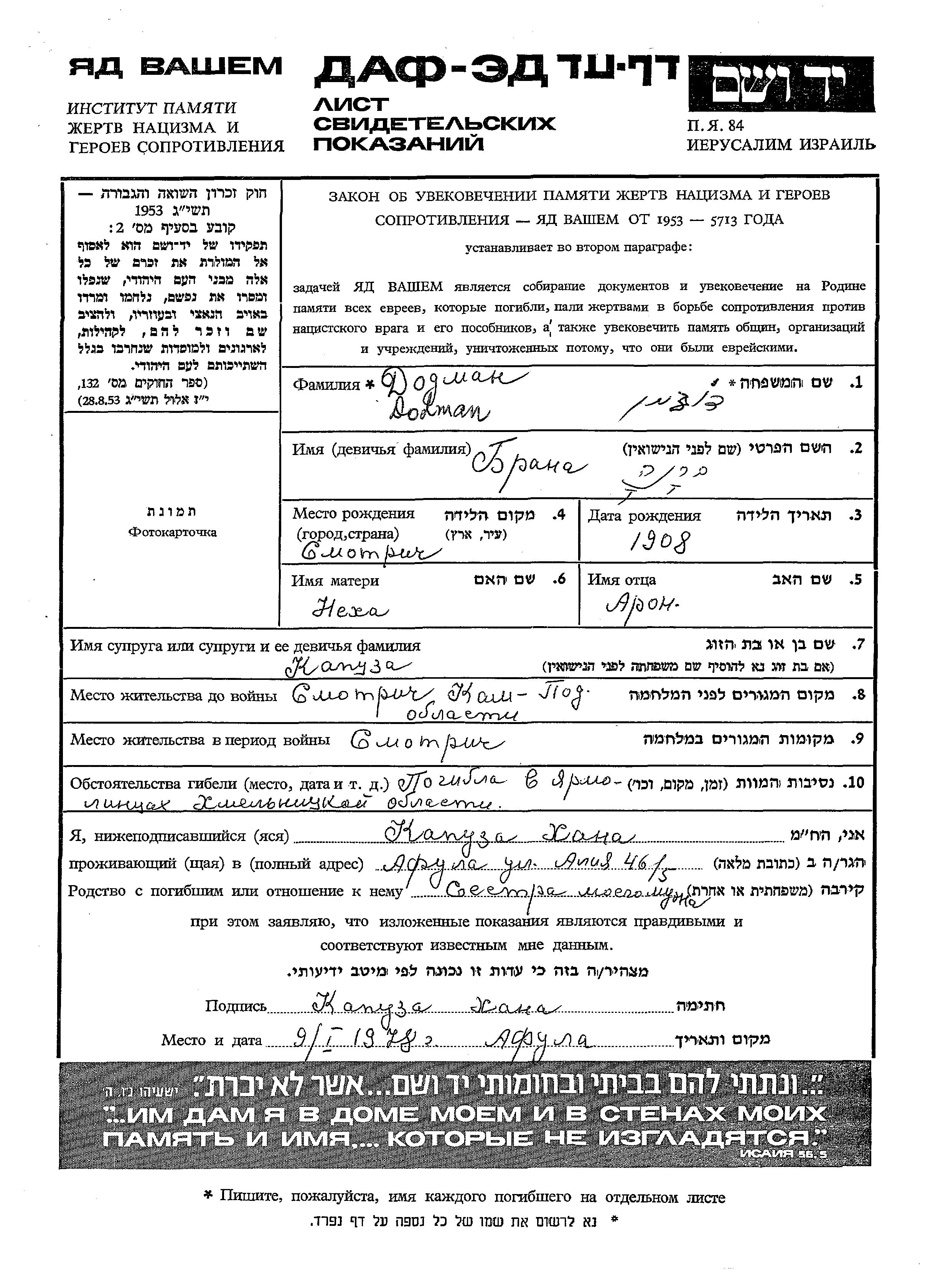 יד ושם - המפעל להנצחת השמות בדפי עד