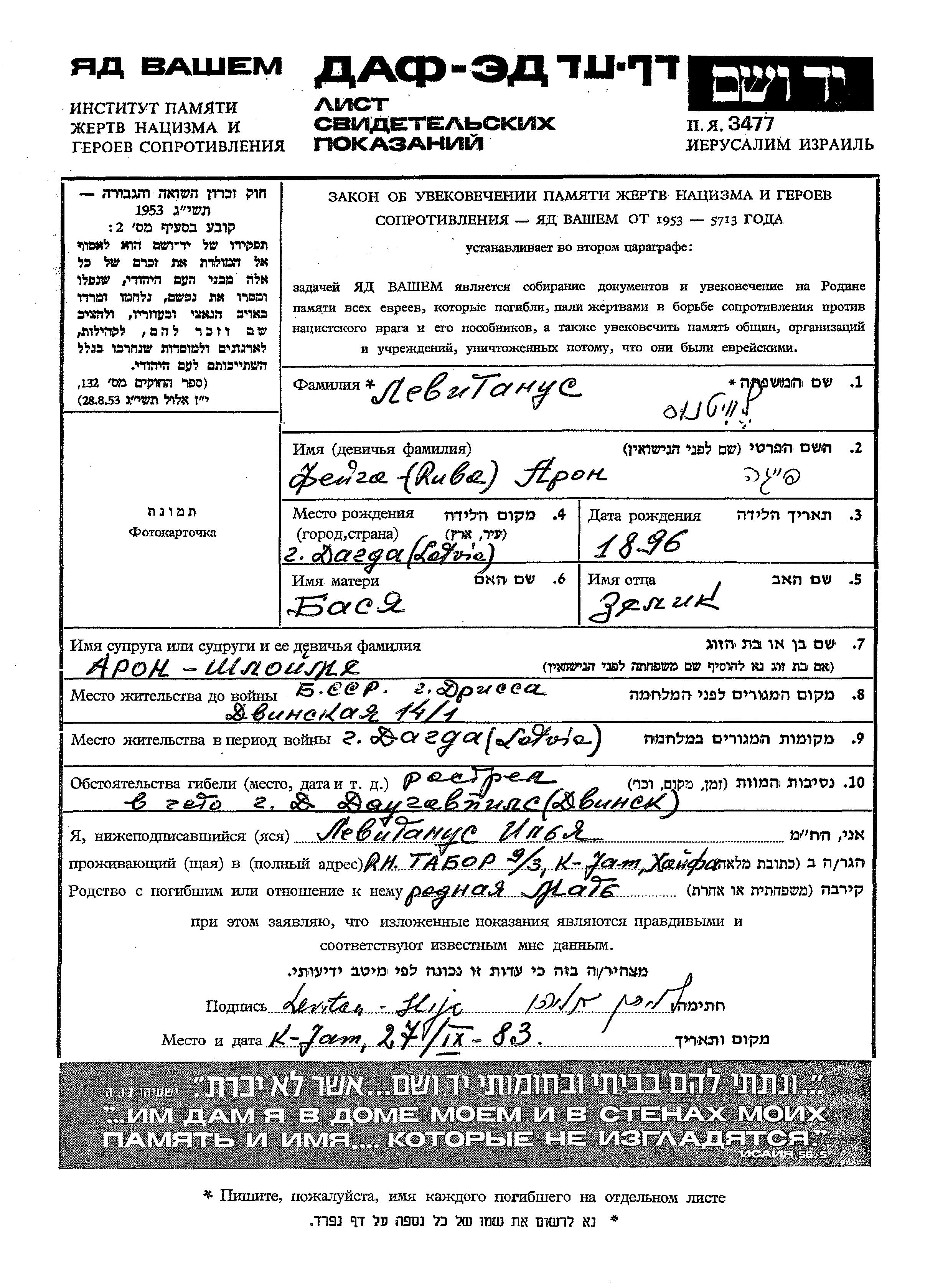 עיר/כפר, גטו/מחנה או אתר רצח או מחוז/אזור או מדינה. שם מקום ניתן לחפש רק בא-ב לטיני.