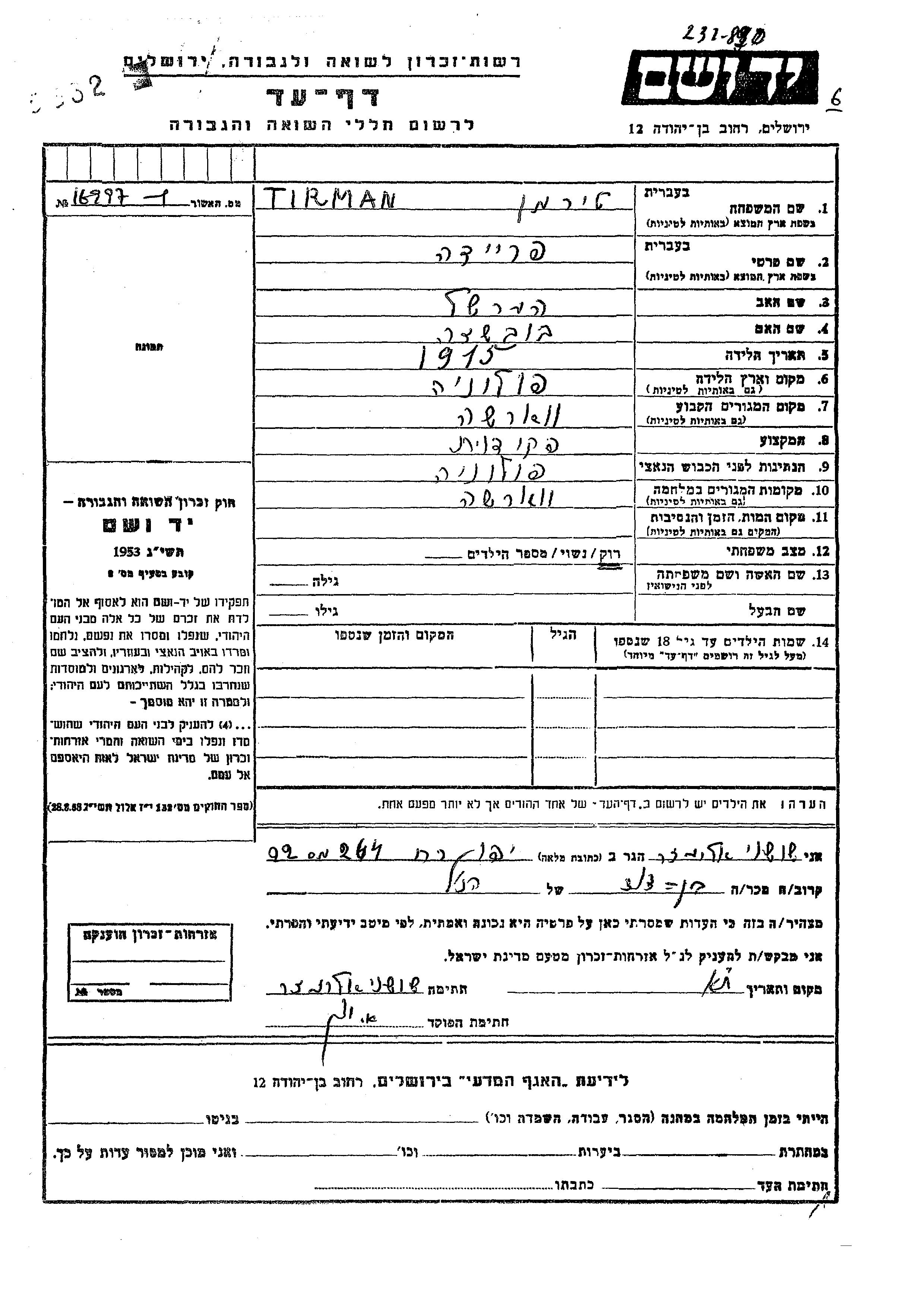 יד ושם - המפעל להנצחת השמות בדפי עד