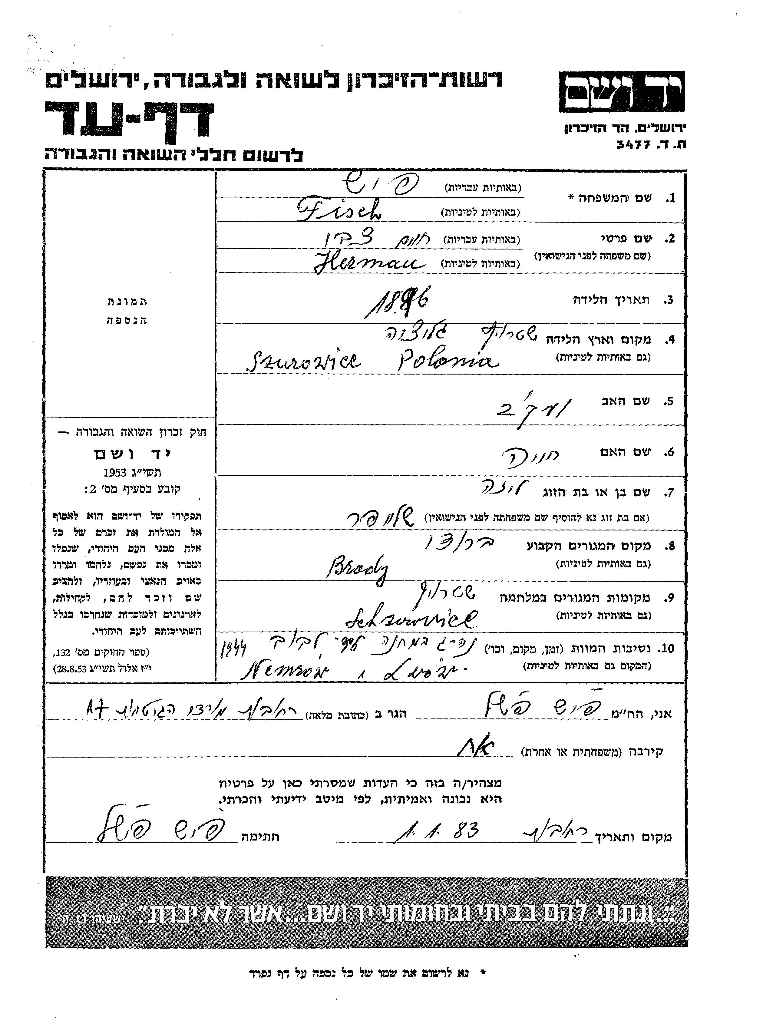 יד ושם - המפעל להנצחת השמות בדפי עד