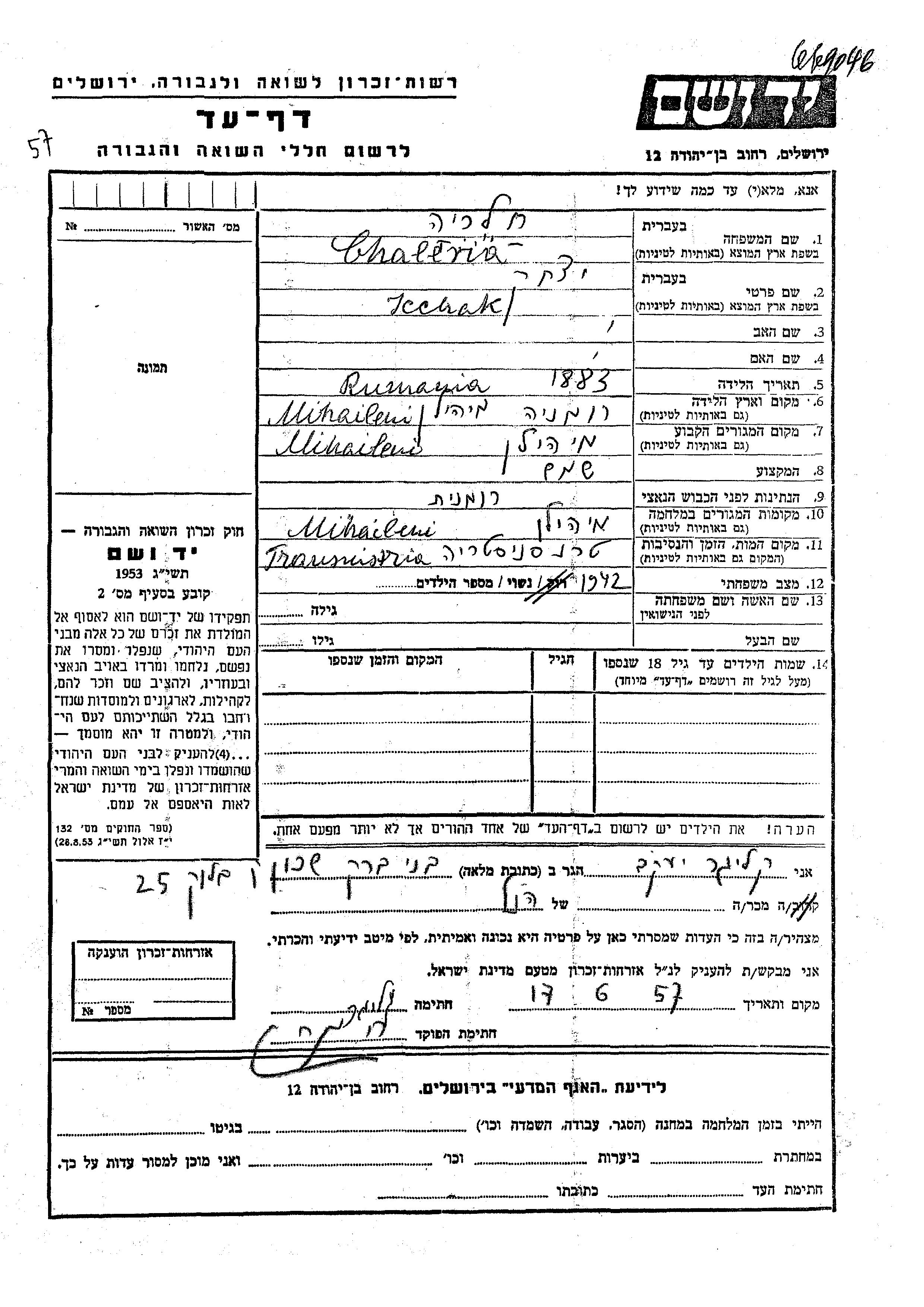 חיפוש שם מוסר דף העד. חיפוש לפי כל שם פרטי, כולל כינוי או שם חיבה