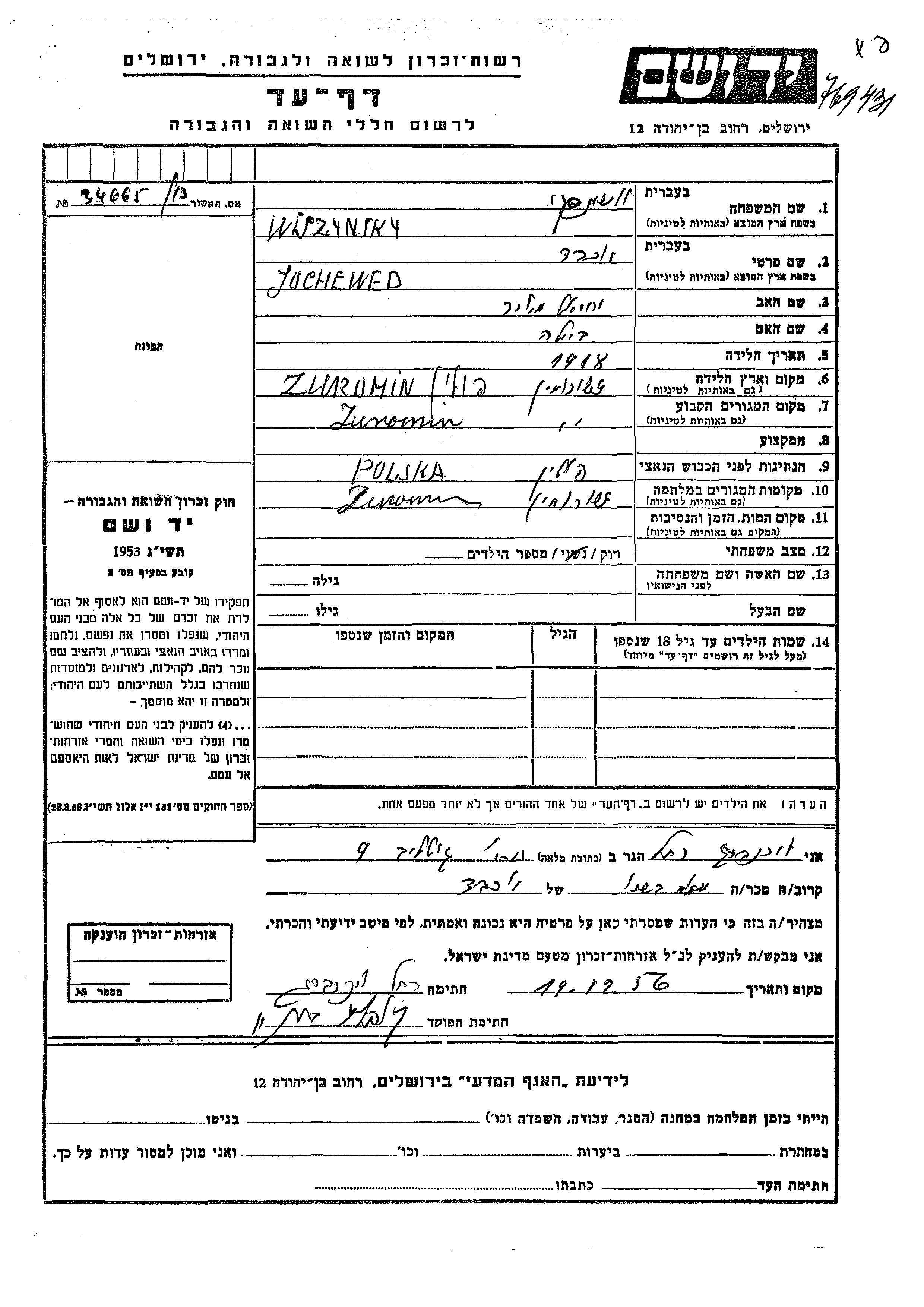 Wiszynsky Jochewed 1918 Zuromin, פולין דף-עד