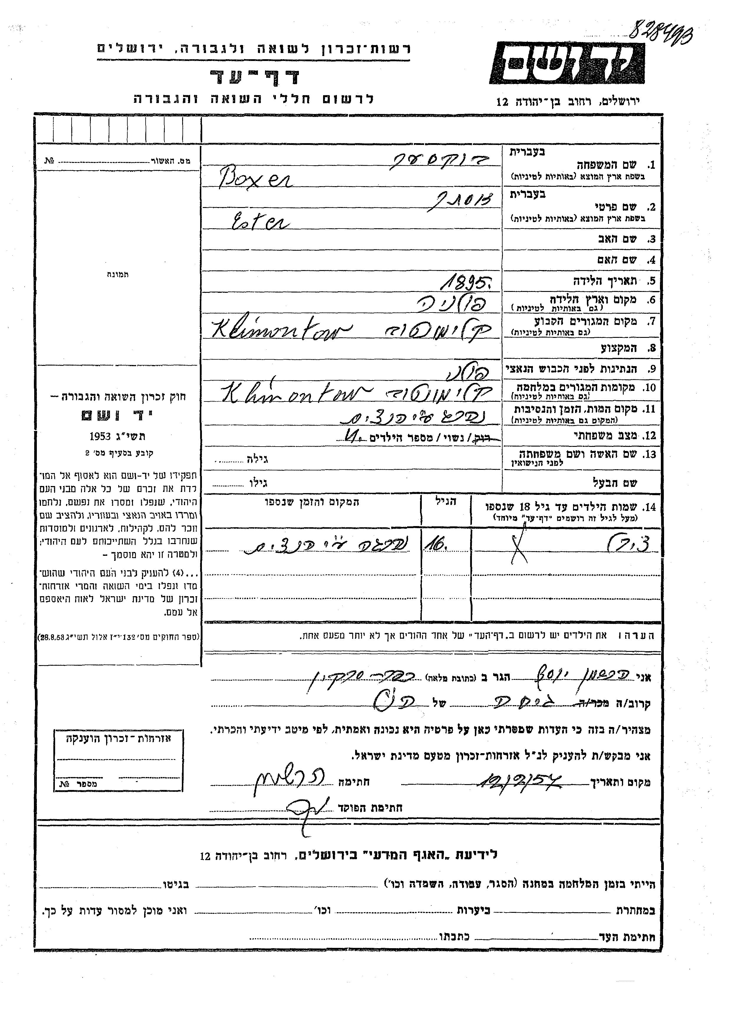 חיפוש שם מוסר דף העד. חיפוש לפי כל שם פרטי, כולל כינוי או שם חיבה