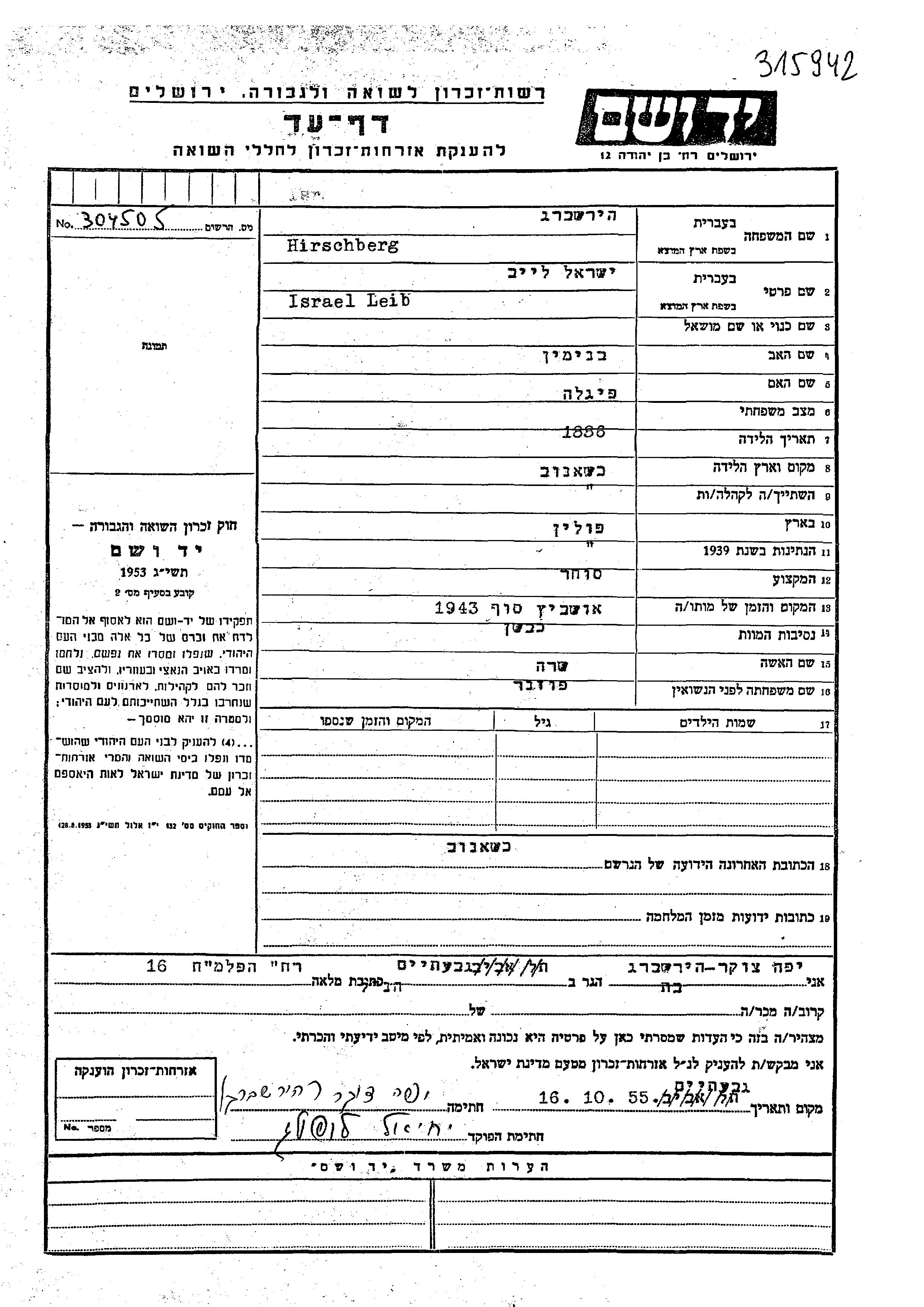 Search by name of any place during the Holocaust period: Town,Village, Camp, Ghetto, District, Region or Country