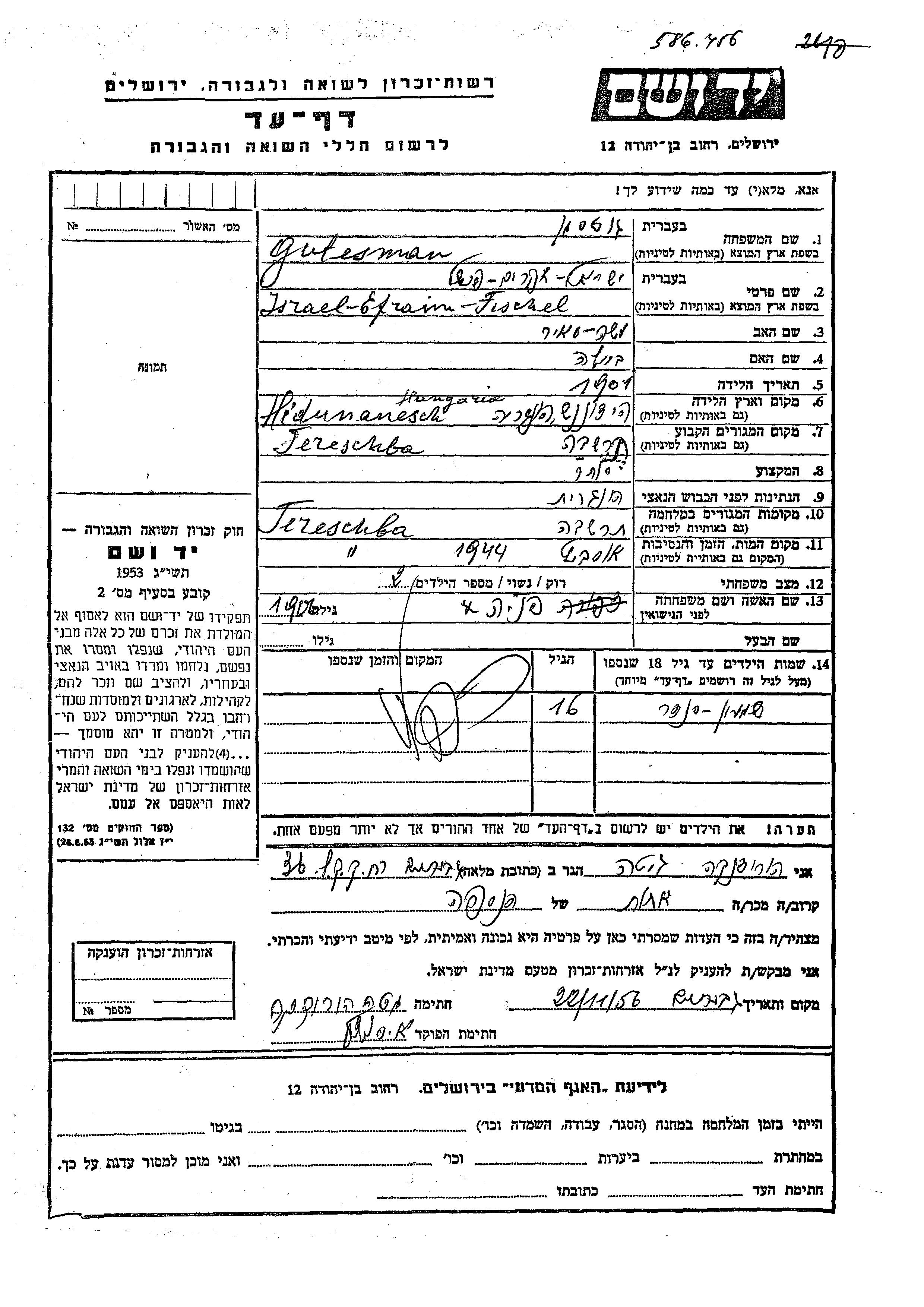 עיר/כפר, גטו/מחנה או אתר רצח או מחוז/אזור או מדינה. שם מקום ניתן לחפש רק בא-ב לטיני.