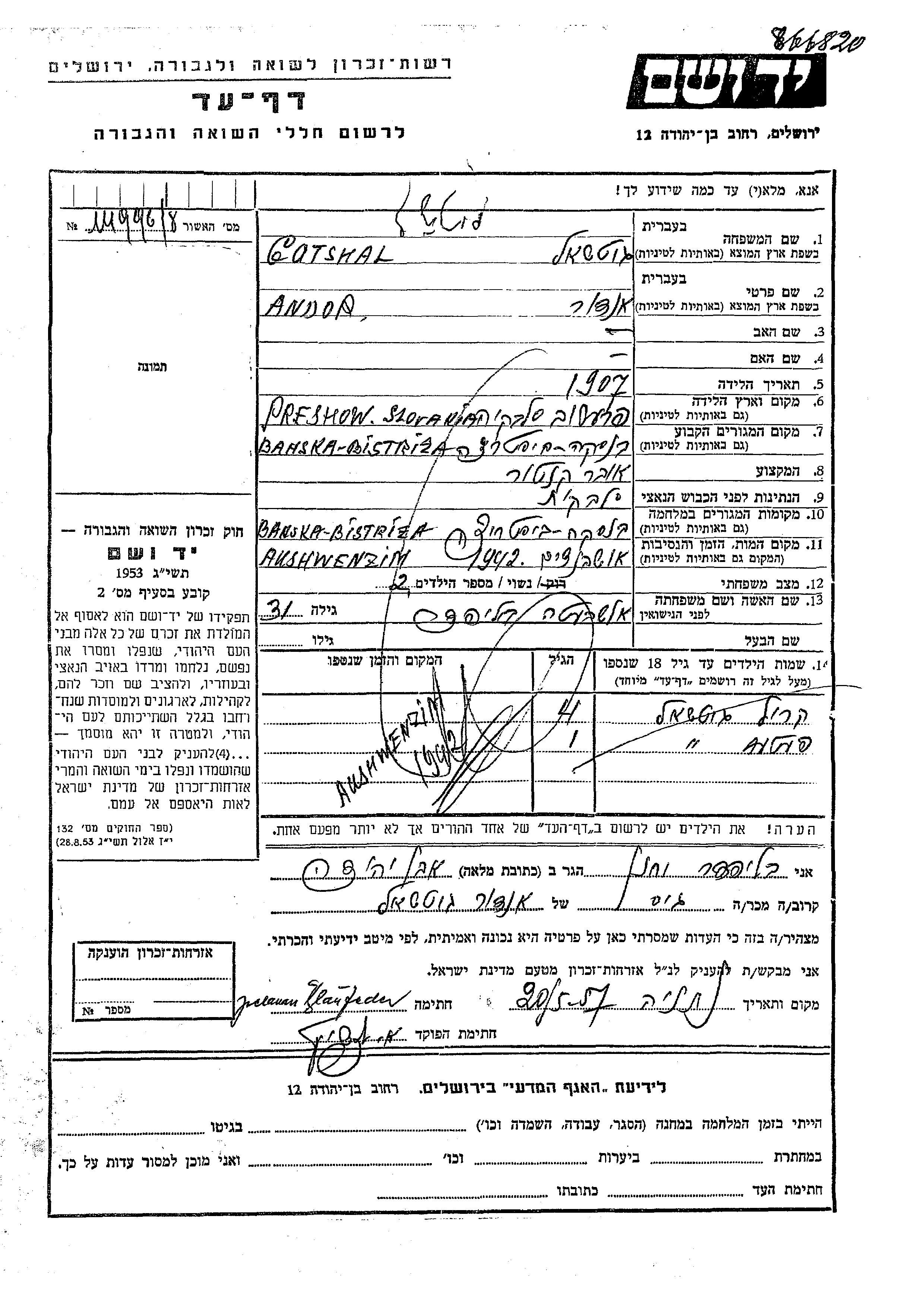 יד ושם - המפעל להנצחת השמות בדפי עד