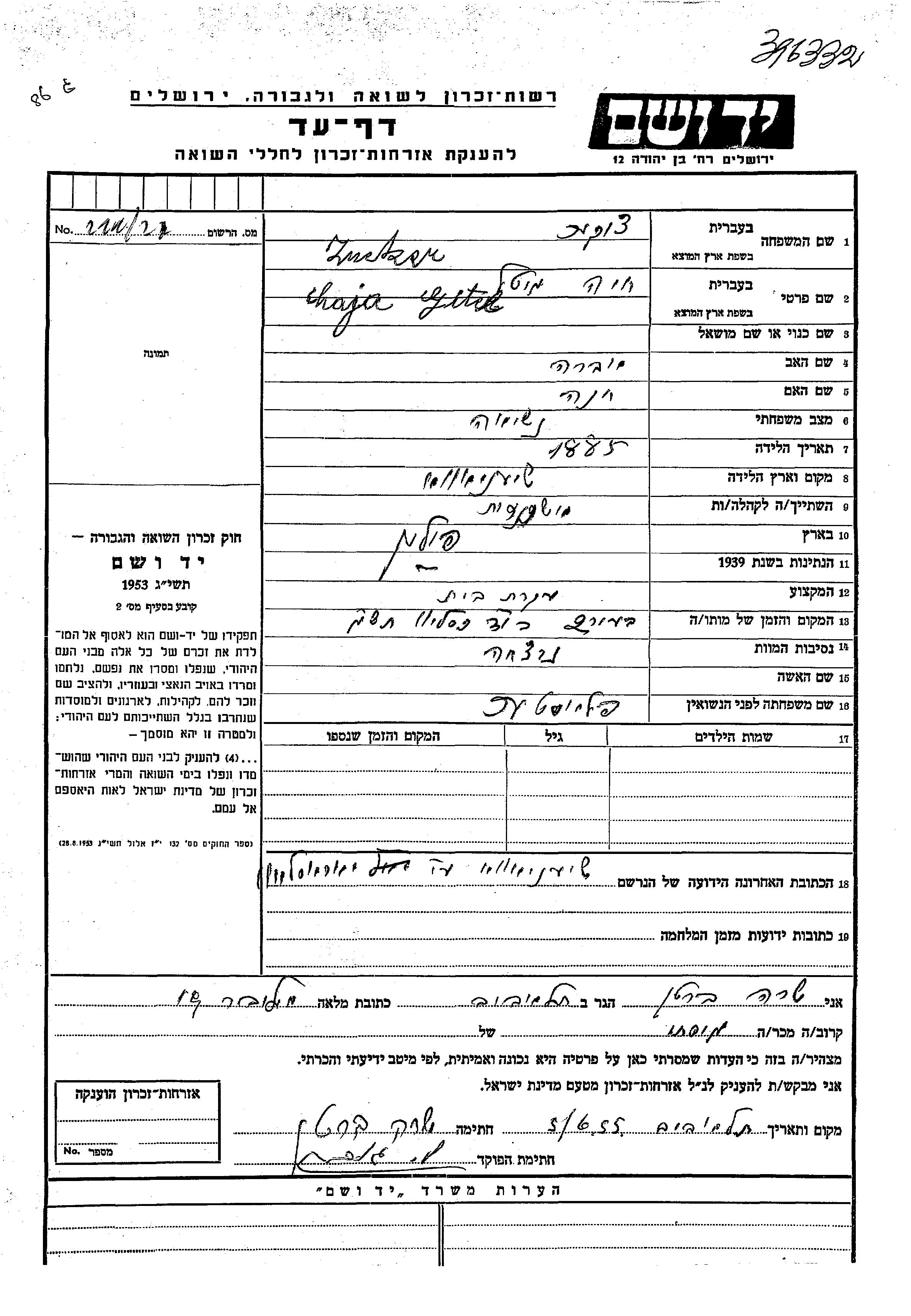 יד ושם - המפעל להנצחת השמות בדפי עד