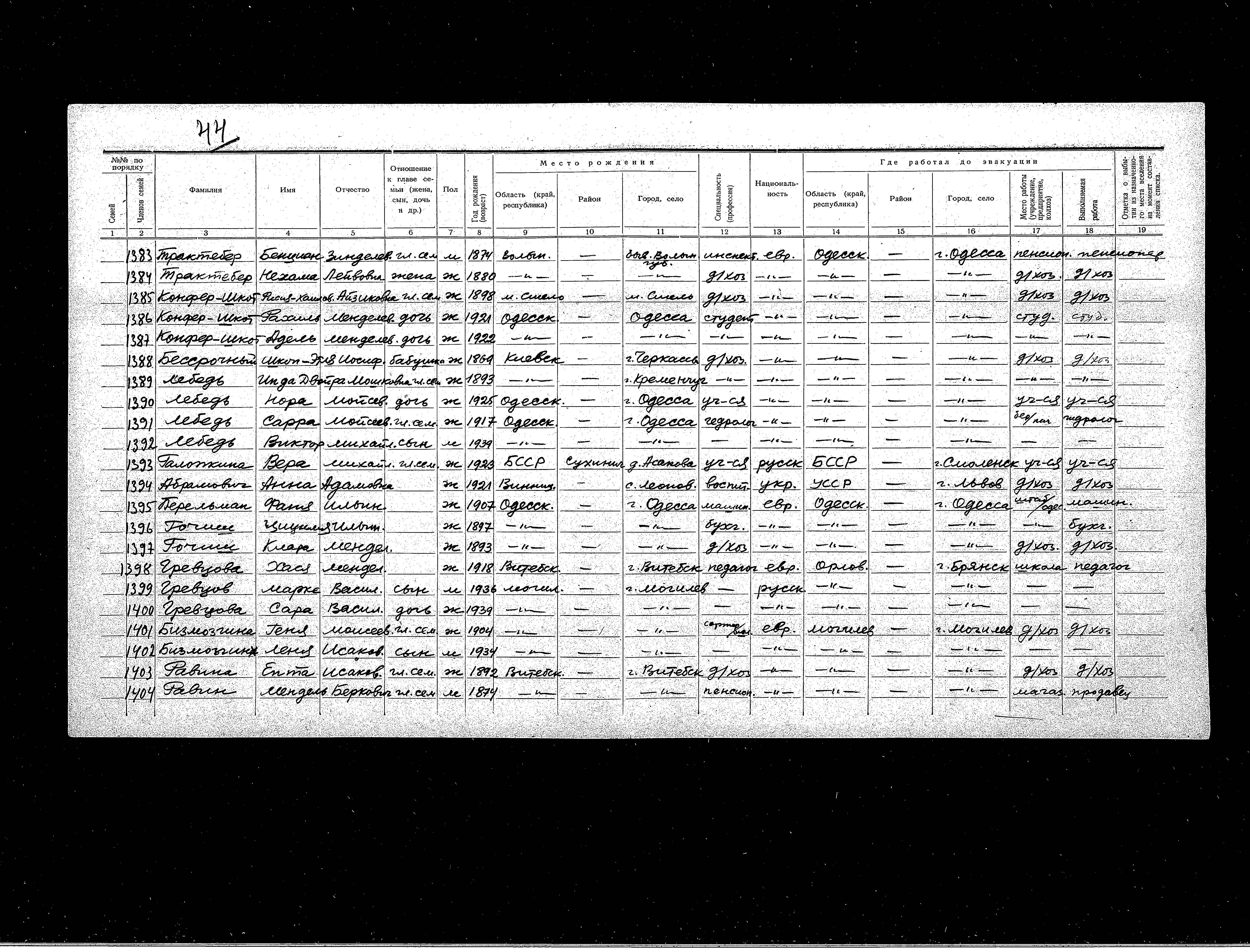 היא נרשם/ה בעקבות הפינוי\ באזורים הפניים של ברית המועצות.