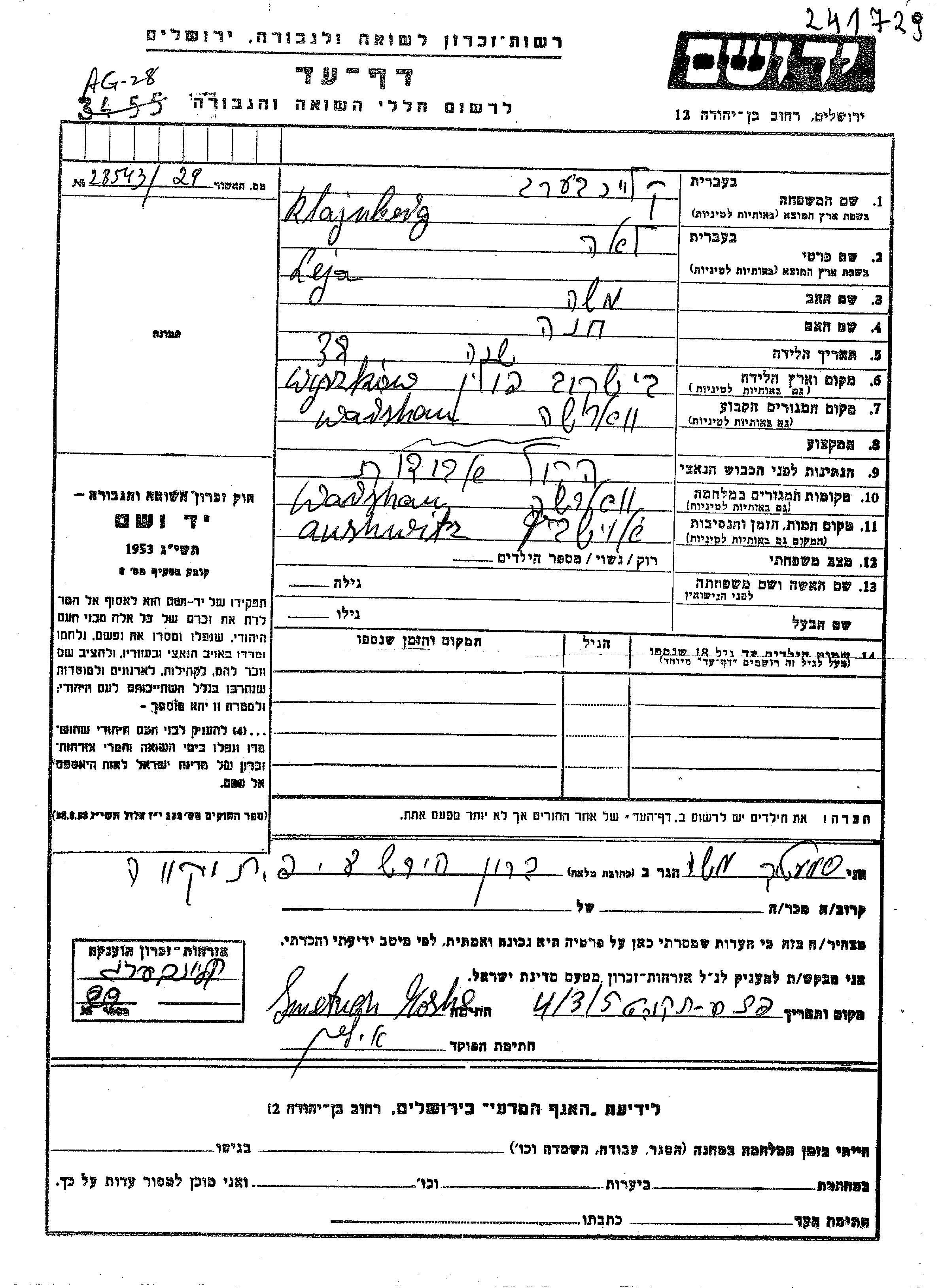 יד ושם - המפעל להנצחת השמות בדפי עד