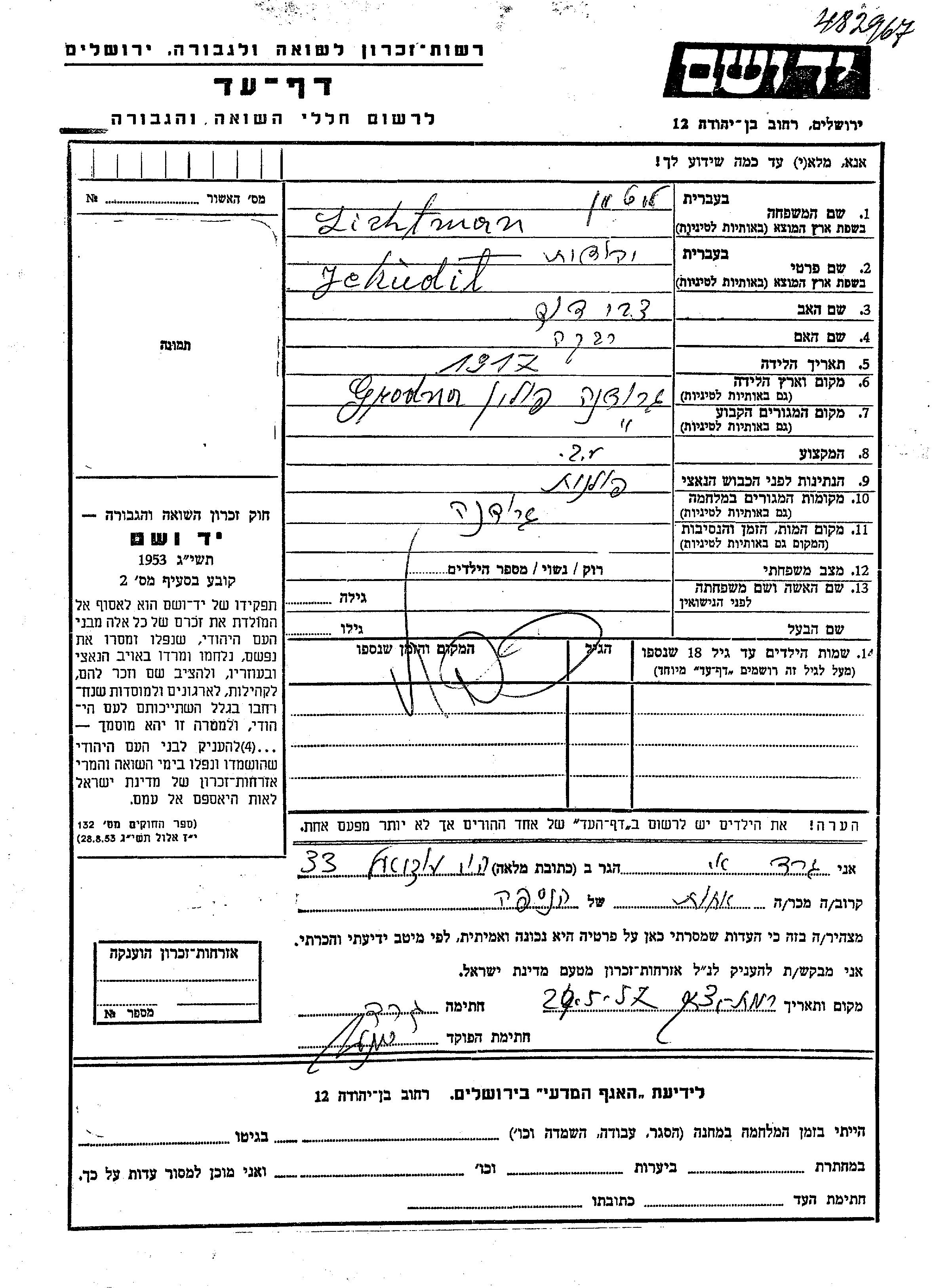 Lichtman לוטמן יהודית 1917 Grodno, פולין דף-עד