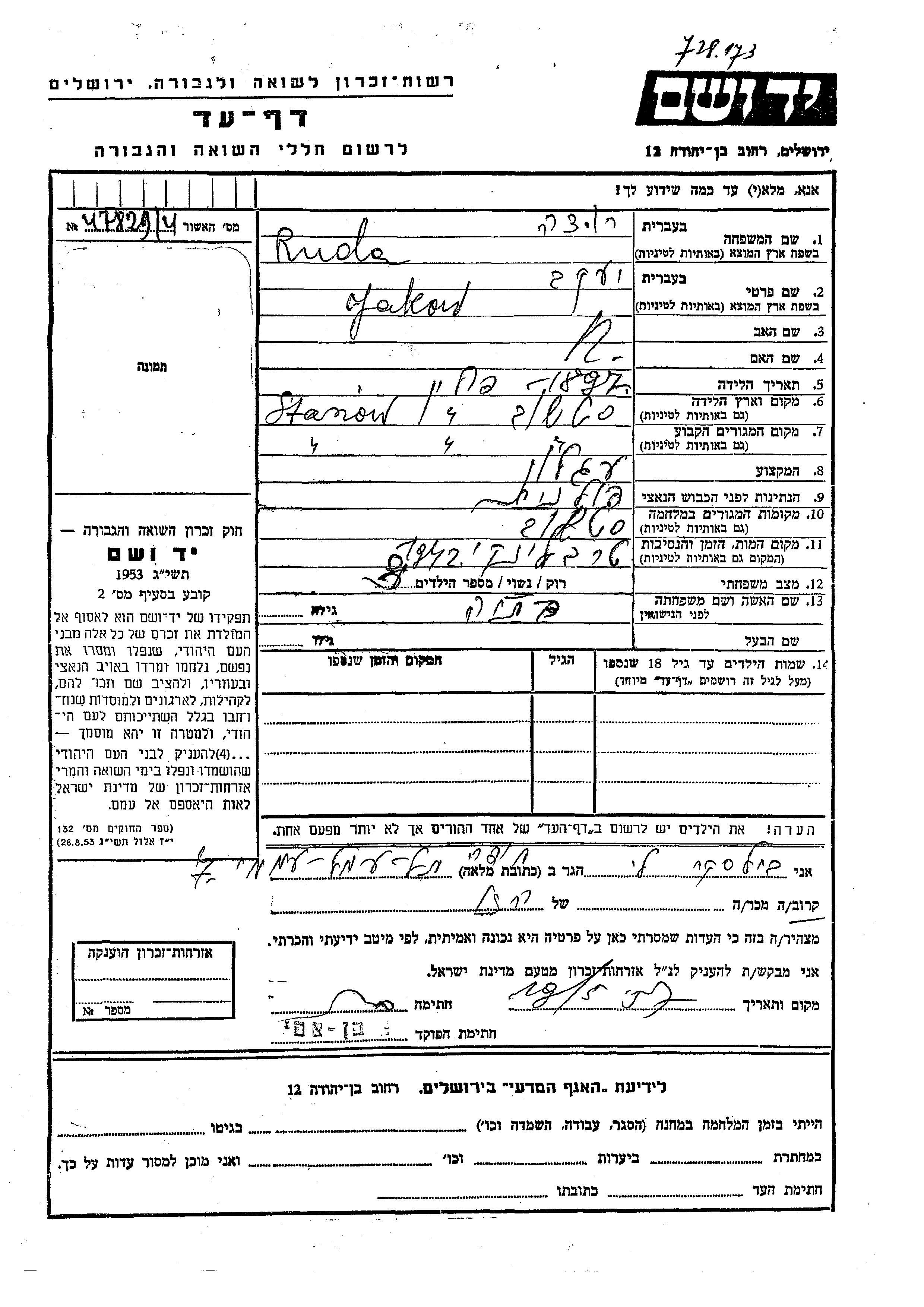 חיפוש שם מוסר דף העד. חיפוש לפי כל שם פרטי, כולל כינוי או שם חיבה