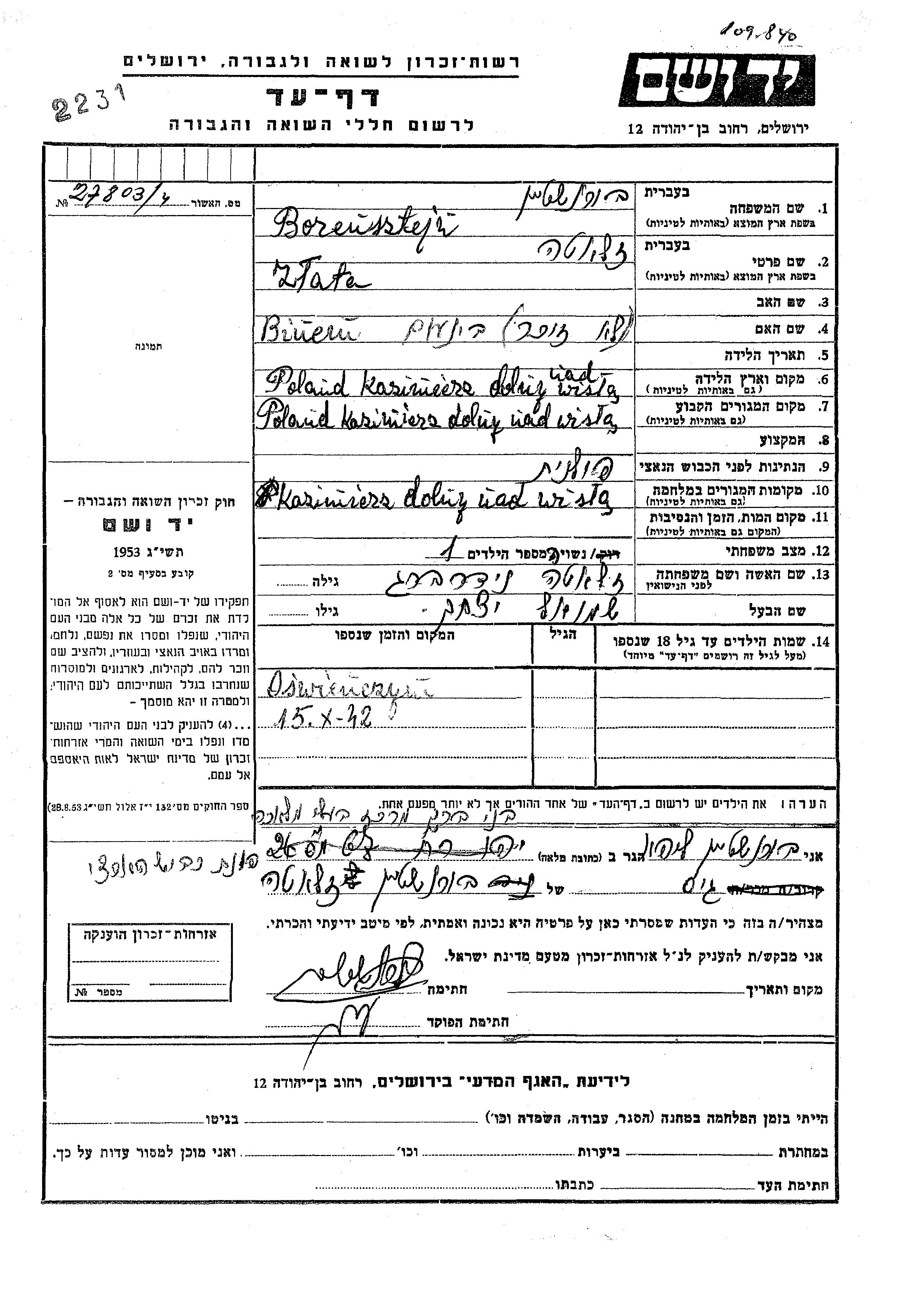 חיפוש שם מוסר דף העד. חיפוש לפי כל שם פרטי, כולל כינוי או שם חיבה