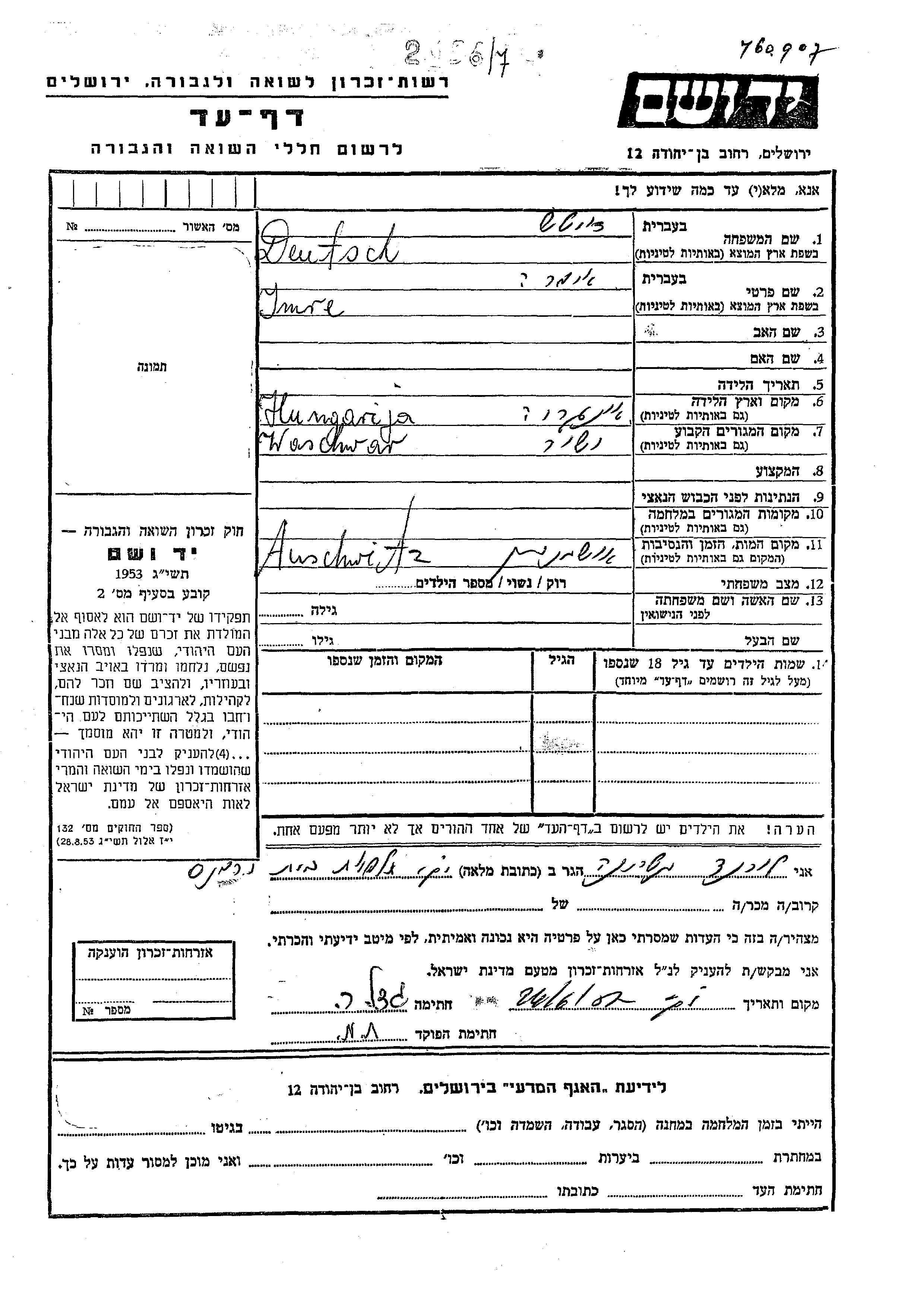 אימרה Deutsch נולד בהונגריה. לפני מלחמת העולם השניה התגורר בWaschwar שבהונגריה.