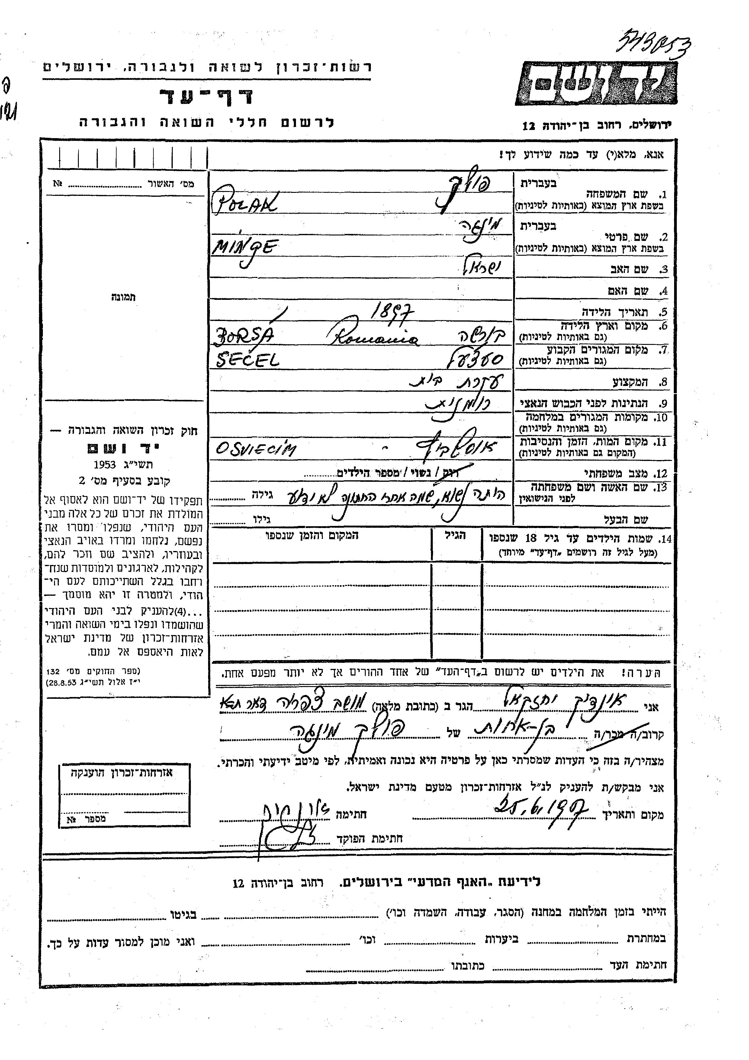 חיפוש שם מוסר דף העד. חיפוש לפי כל שם פרטי, כולל כינוי או שם חיבה