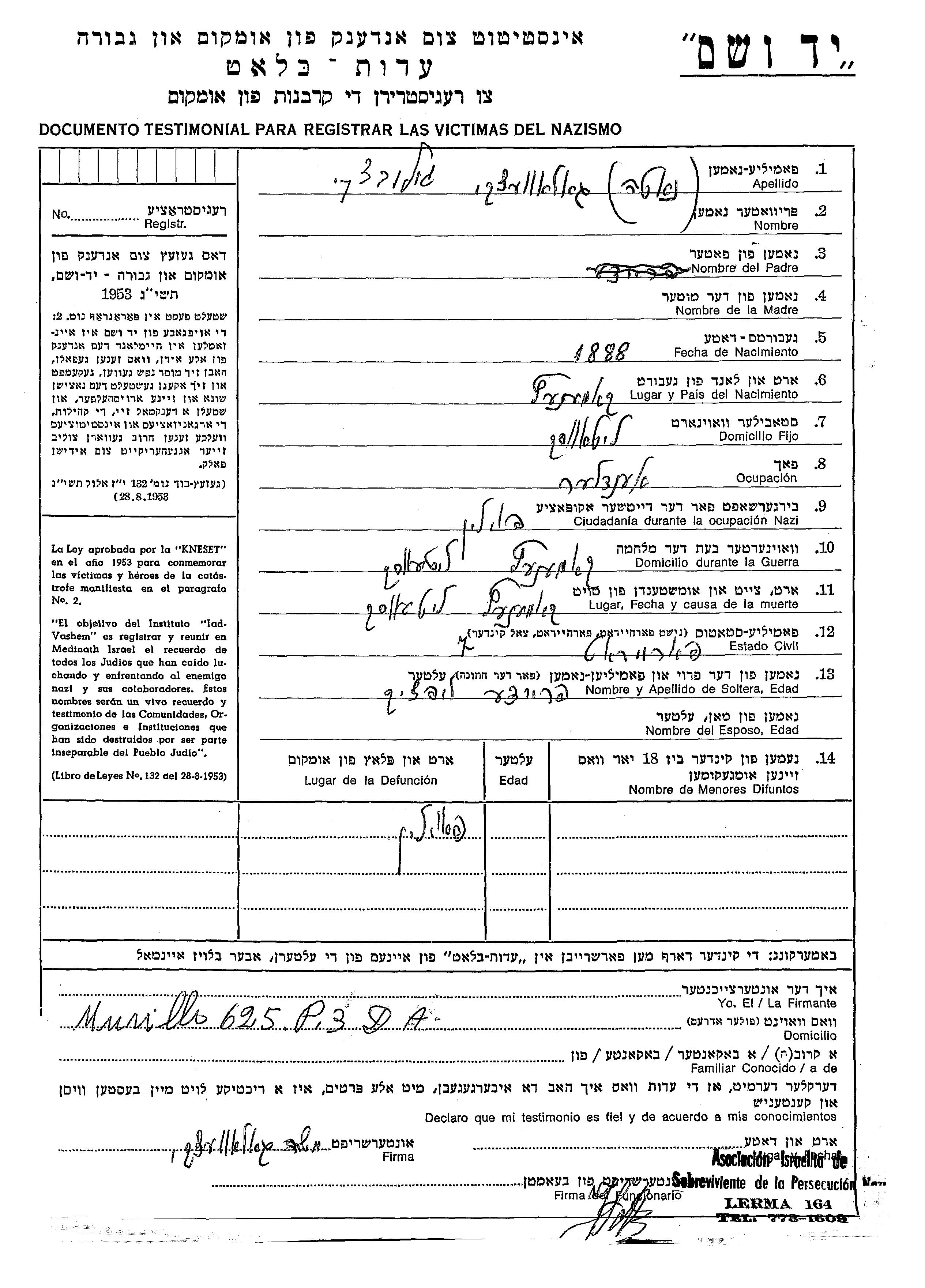 יד ושם - המפעל להנצחת השמות בדפי עד