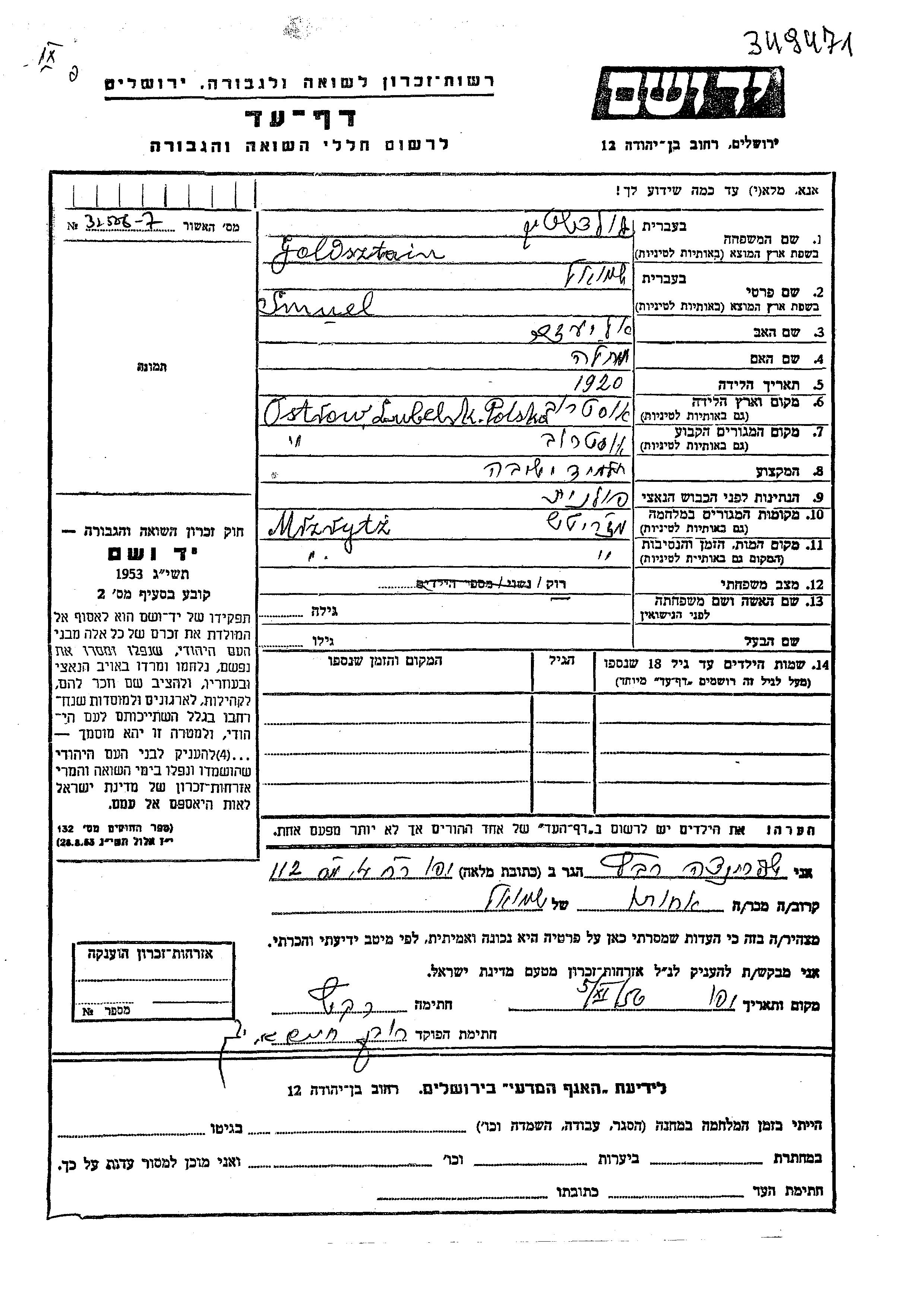 Goldsztain Smuel 1920 Ostrow, פולין דף-עד