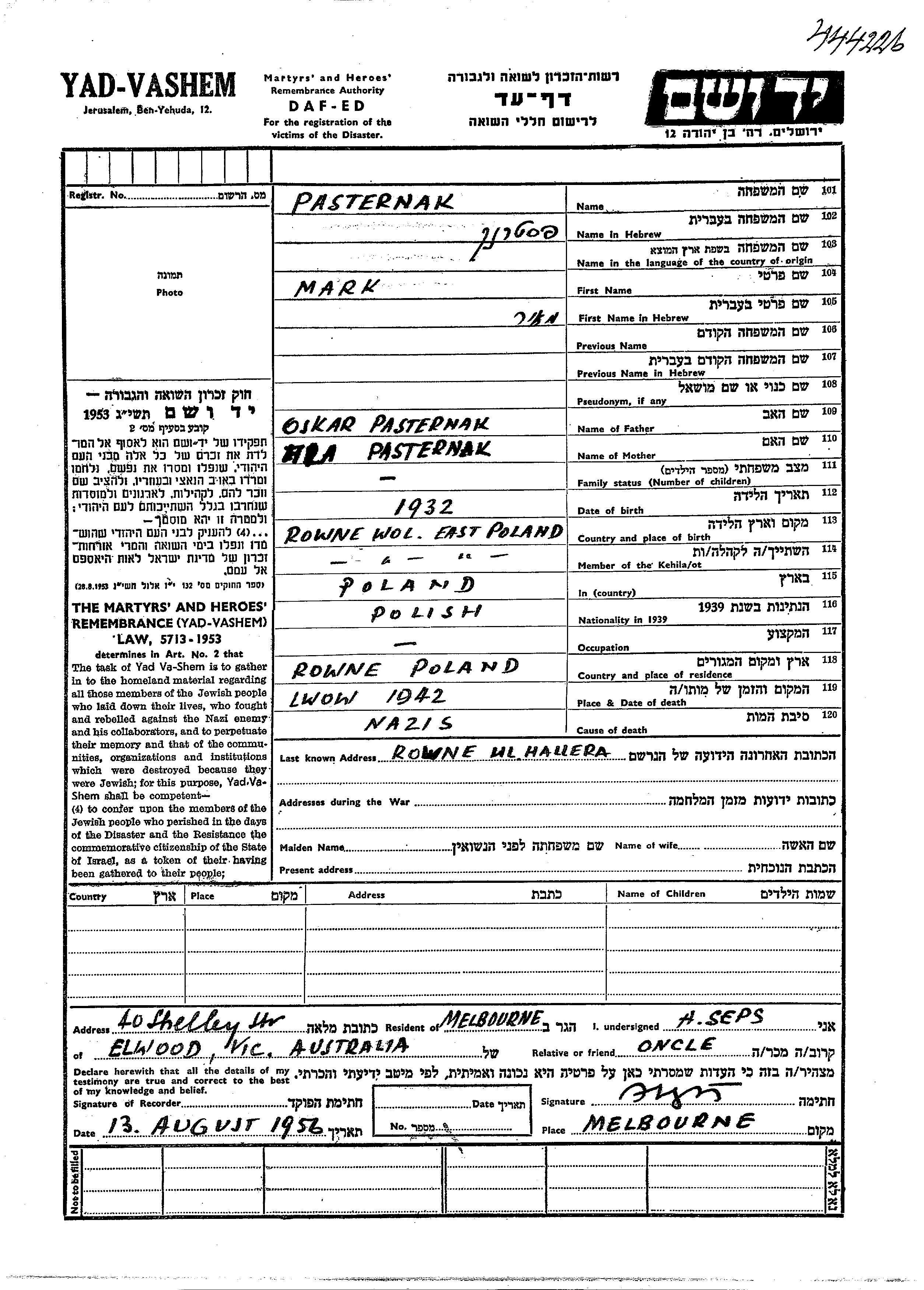 פסטרנק מרק מאיר 1932 פולין דף-עד