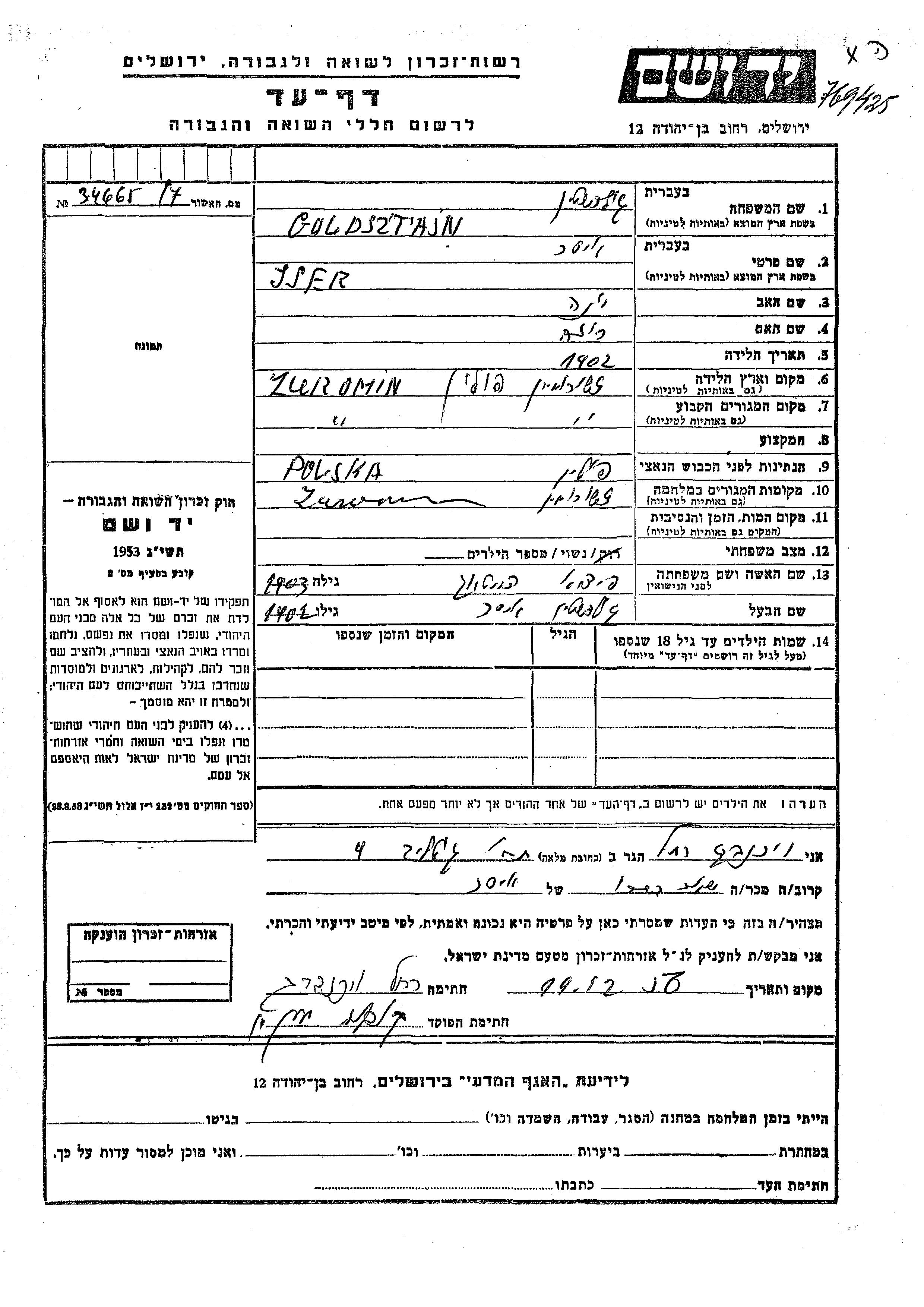 יד ושם - המפעל להנצחת השמות בדפי עד