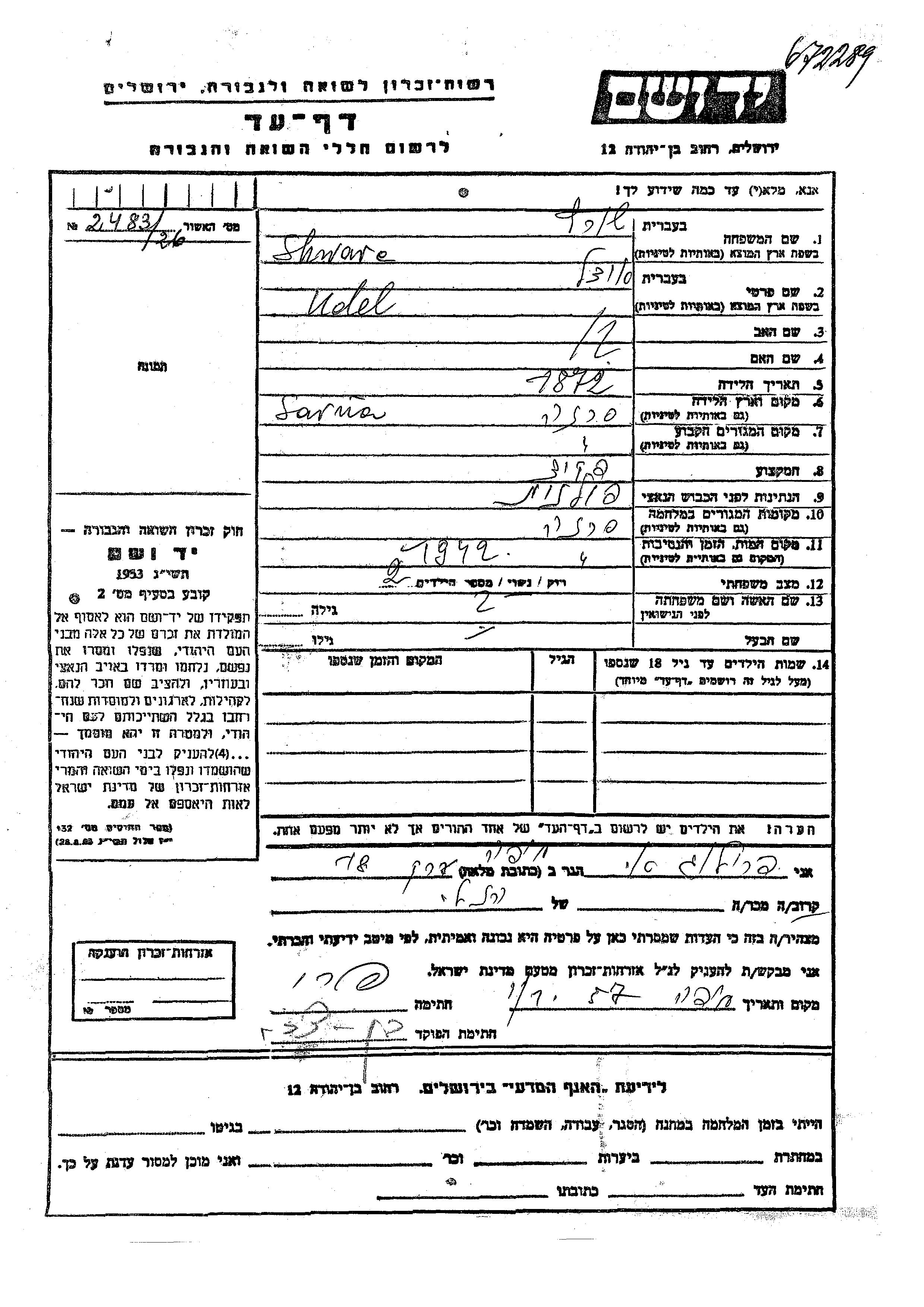 חיפוש שם מוסר דף העד. חיפוש לפי כל שם פרטי, כולל כינוי או שם חיבה