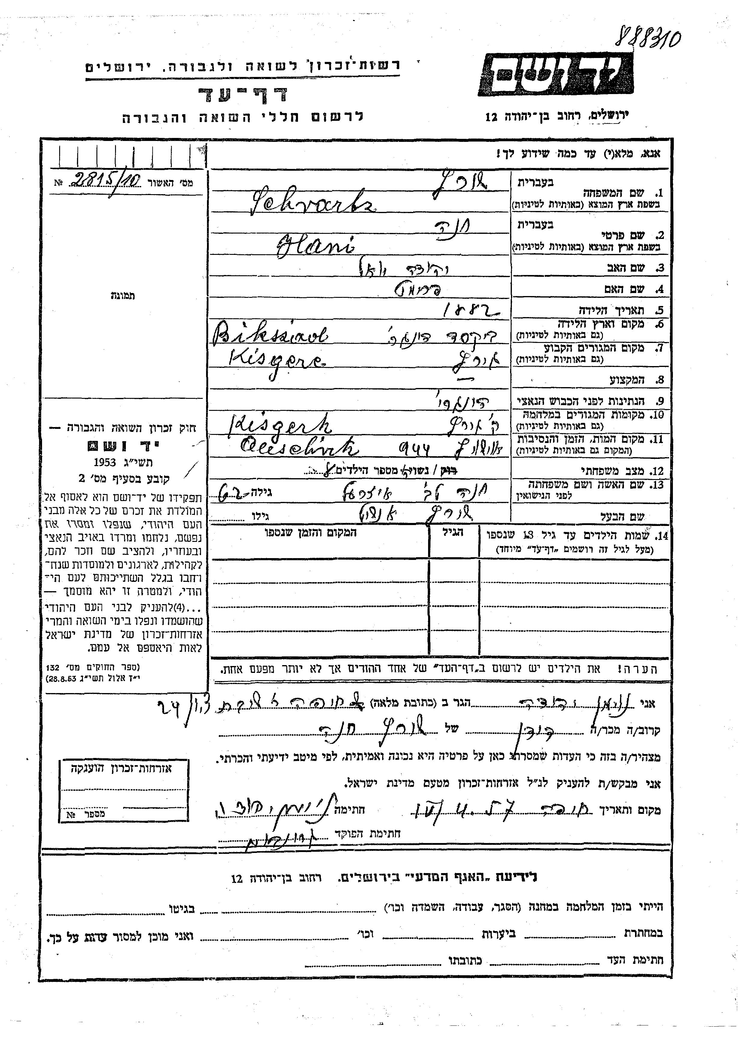 יד ושם - המפעל להנצחת השמות בדפי עד