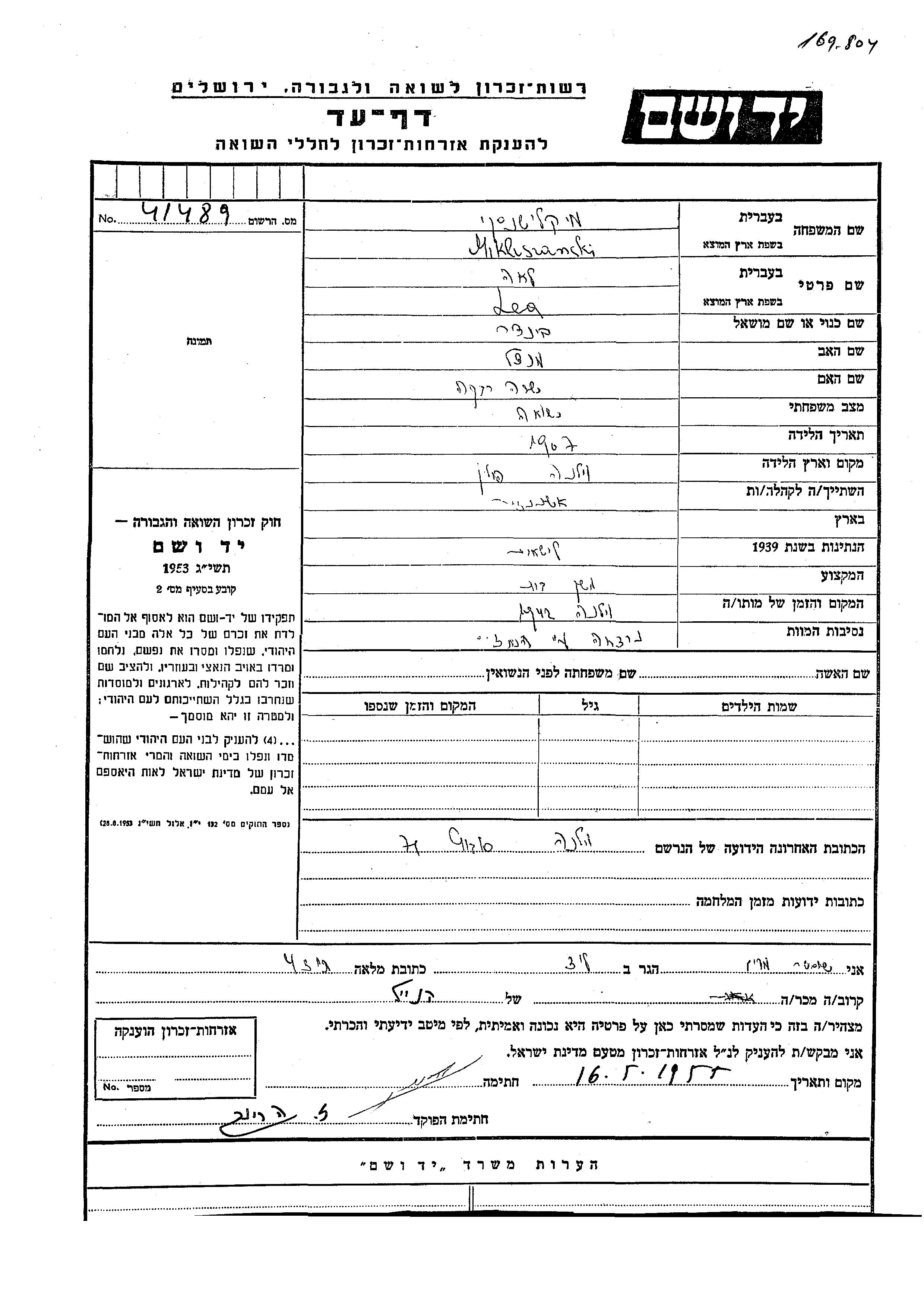 חיפוש שם מוסר דף העד. חיפוש לפי כל שם פרטי, כולל כינוי או שם חיבה