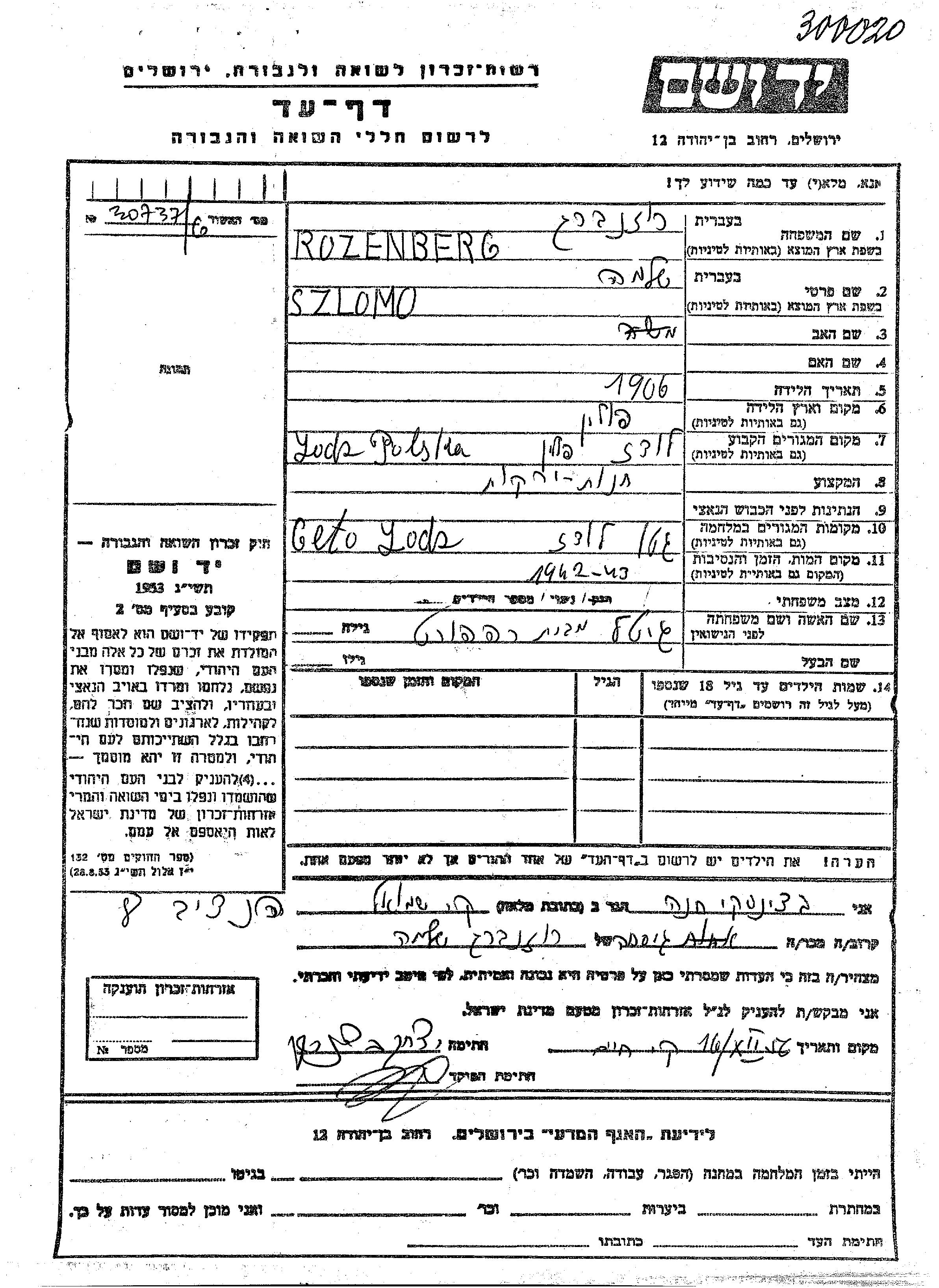 רוזנברג Szlomo 1906 Lodz, פולין דף-עד