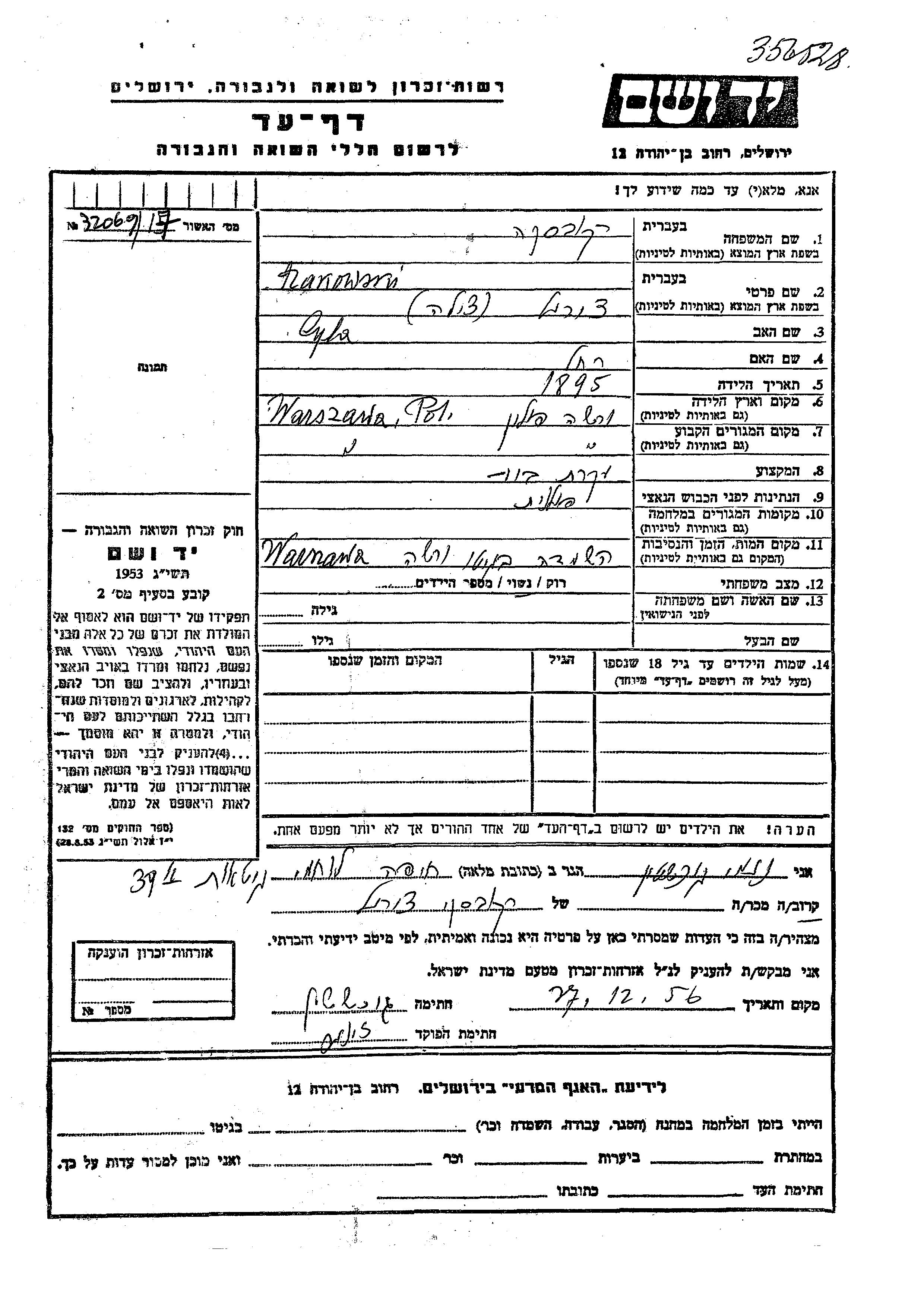 חיפוש שם מוסר דף העד. חיפוש לפי כל שם פרטי, כולל כינוי או שם חיבה