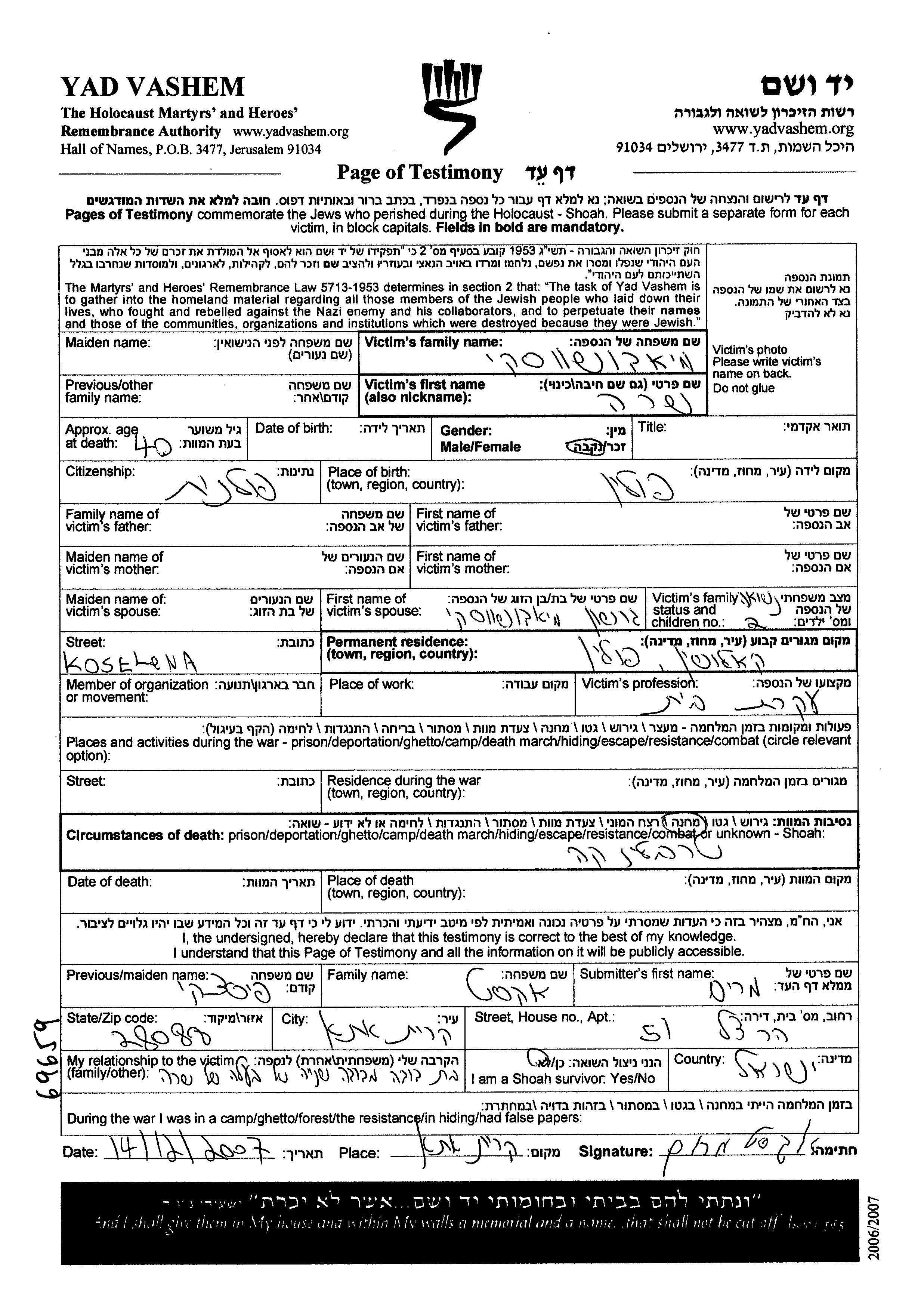 יד ושם - המפעל להנצחת השמות בדפי עד
