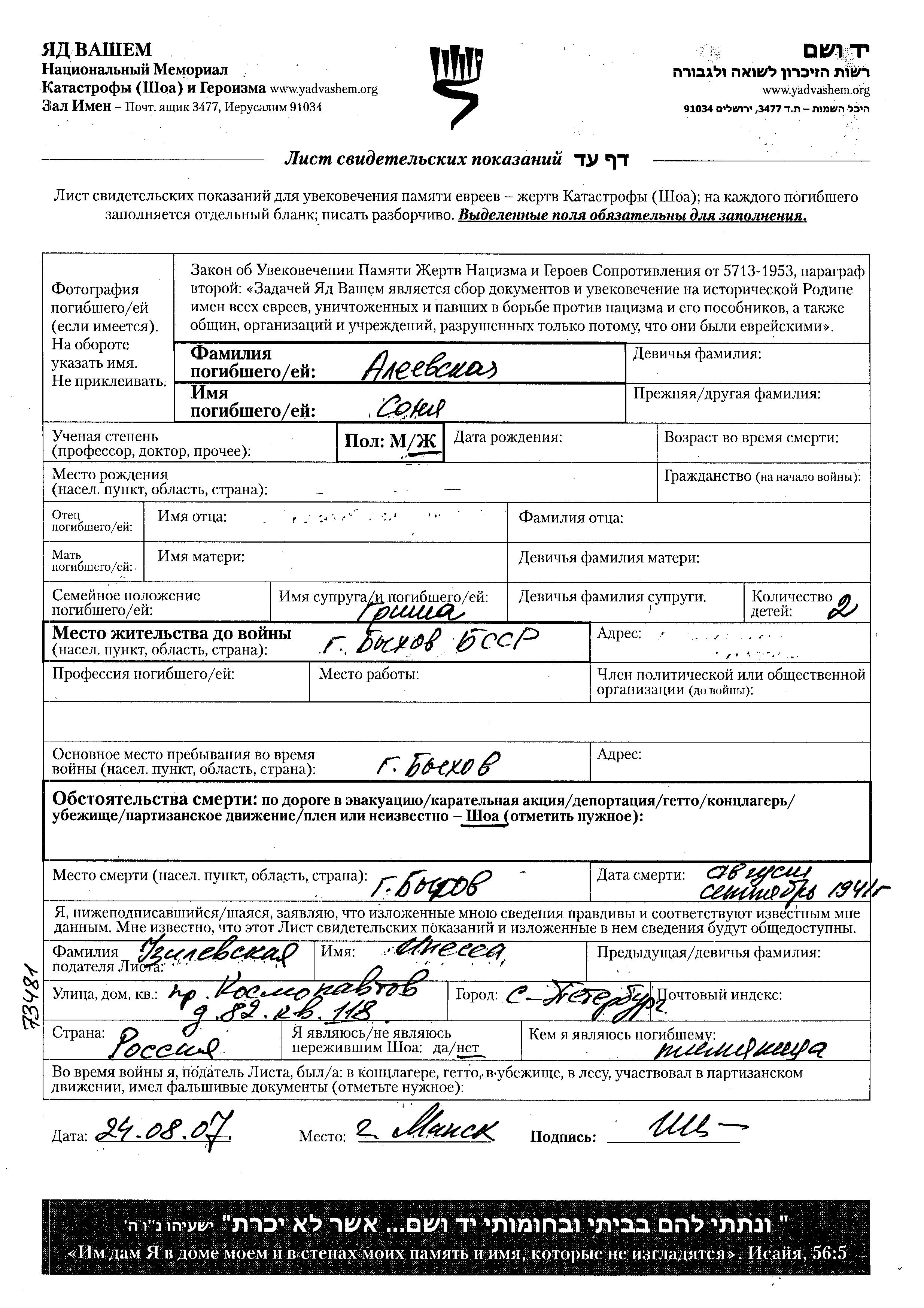 חיפוש שם מוסר דף העד. חיפוש לפי כל שם פרטי, כולל כינוי או שם חיבה