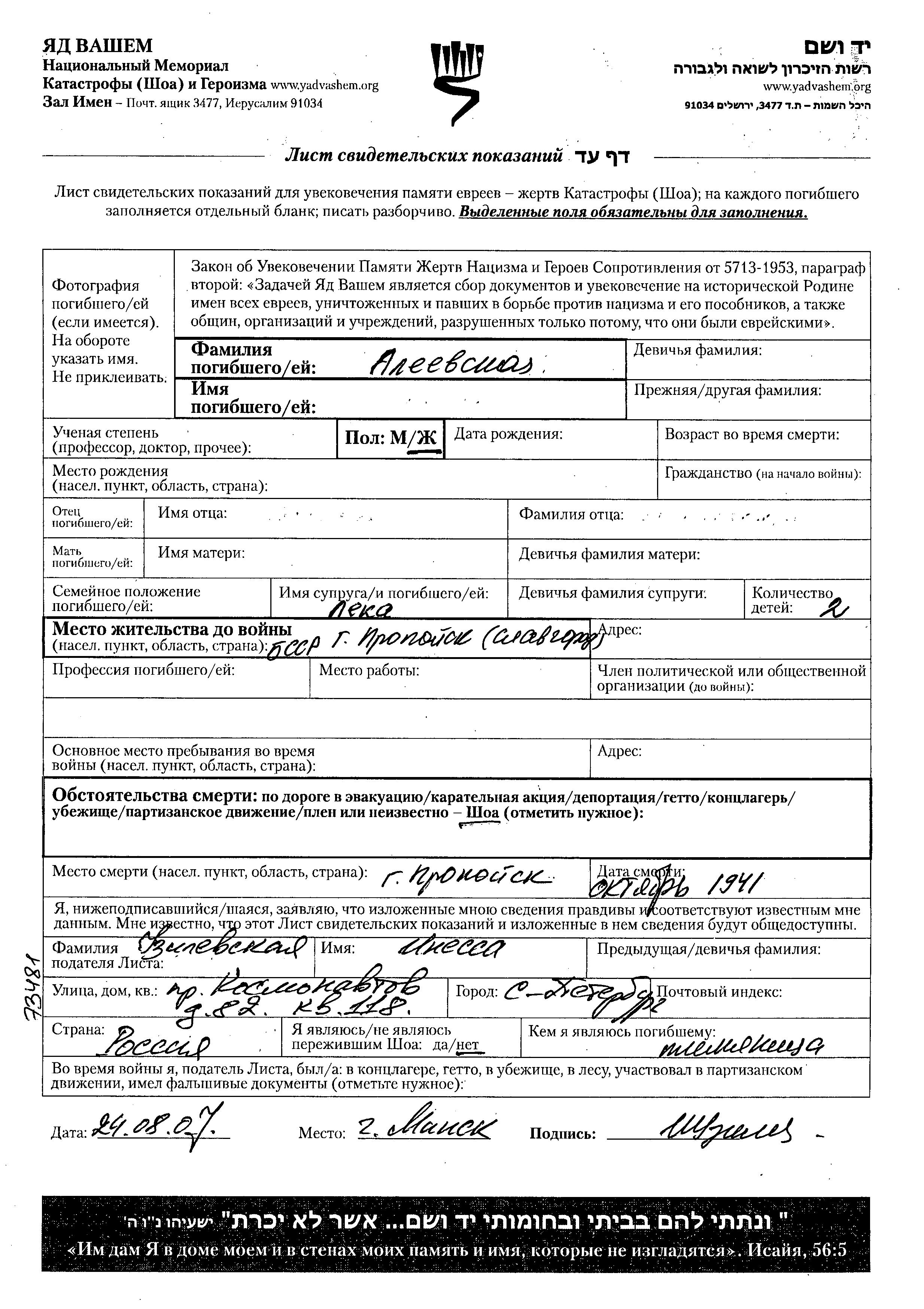 חיפוש שם מוסר דף העד. חיפוש לפי כל שם פרטי, כולל כינוי או שם חיבה