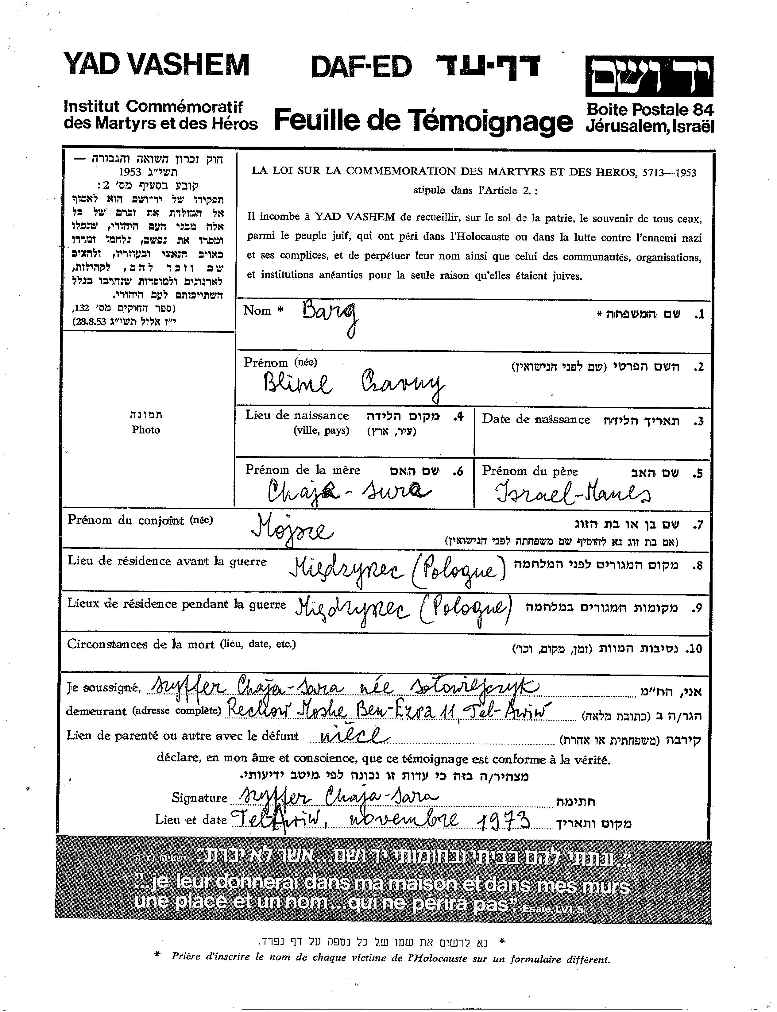 יד ושם - המפעל להנצחת השמות בדפי עד