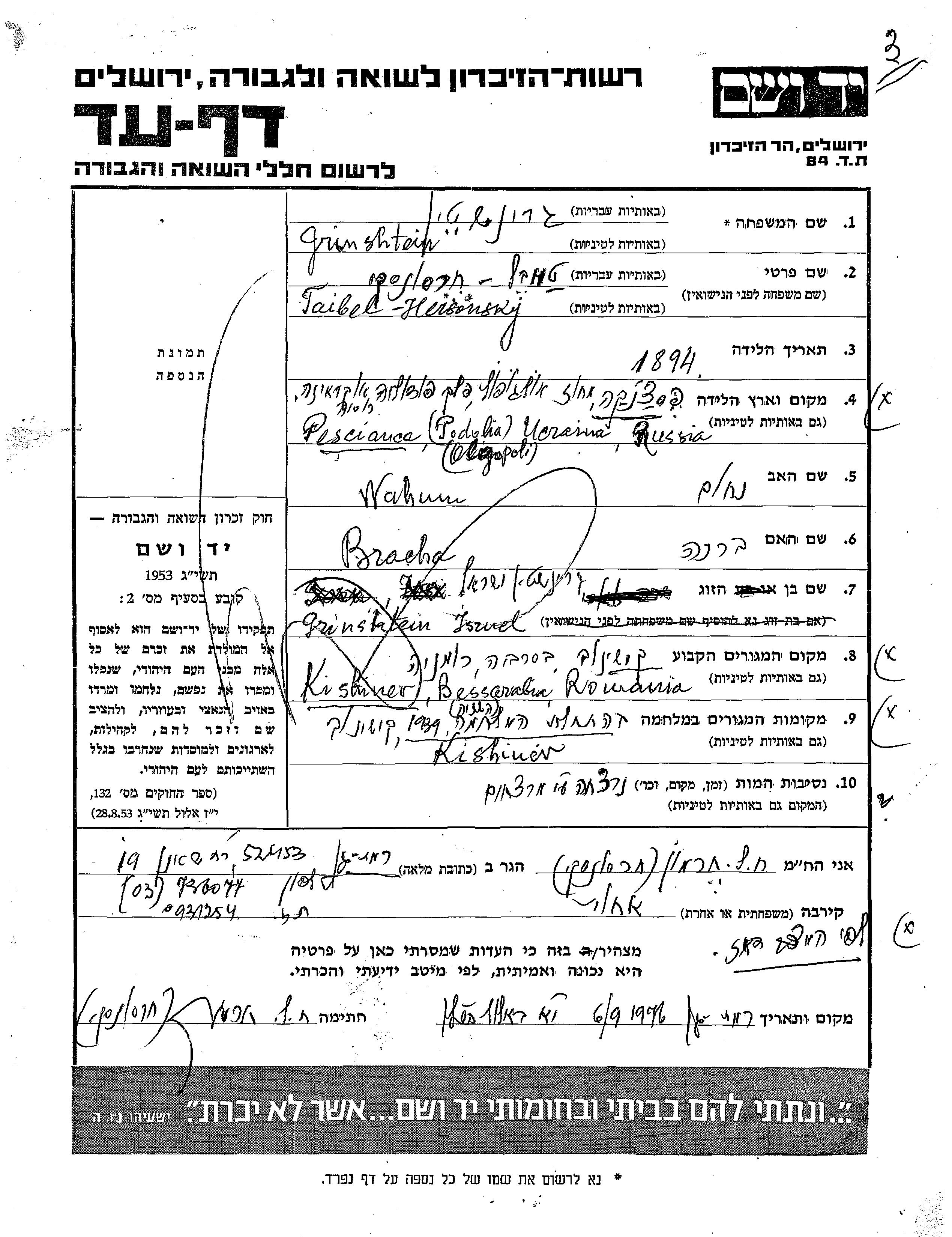יד ושם - המפעל להנצחת השמות בדפי עד