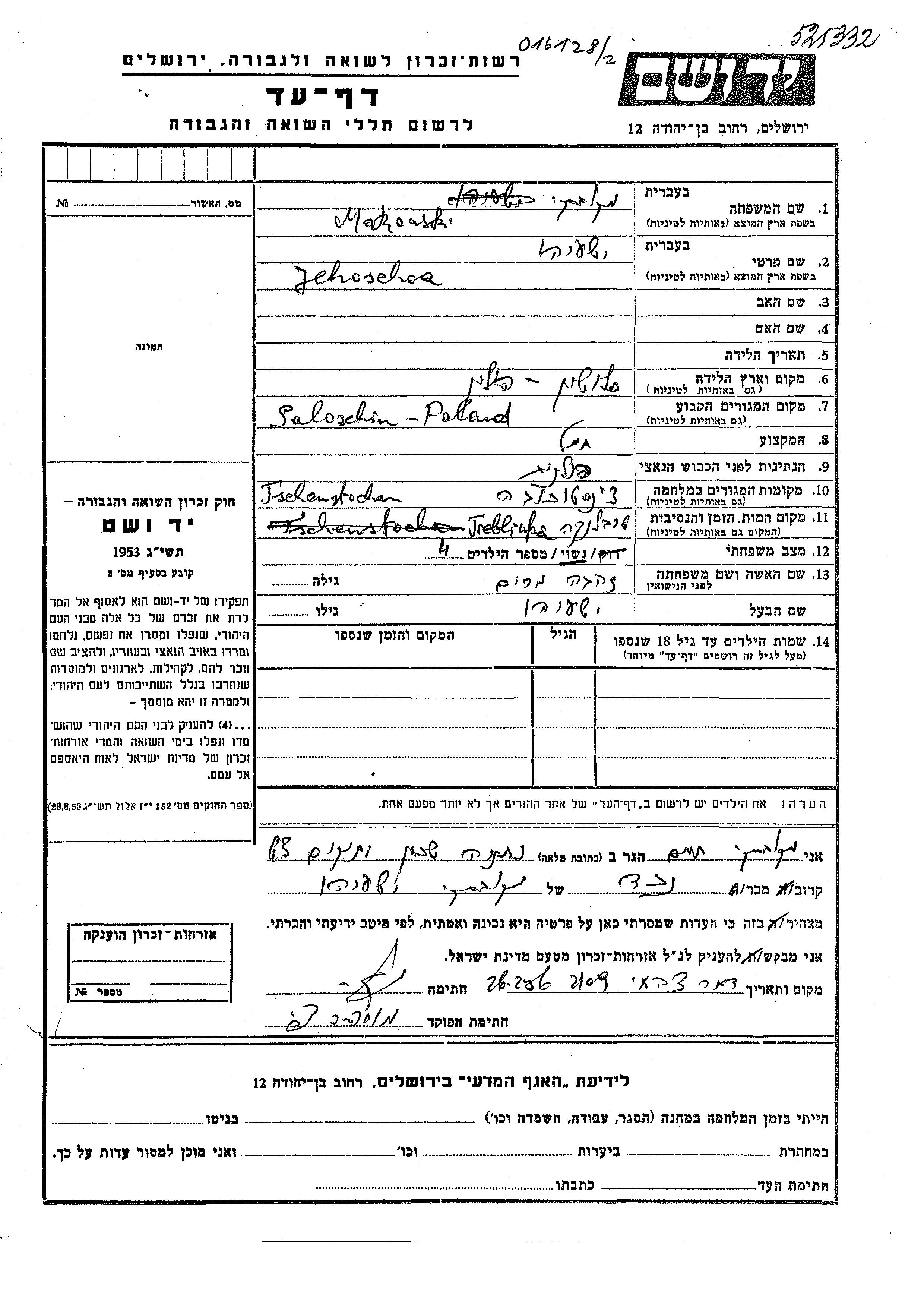 יד ושם - המפעל להנצחת השמות בדפי עד