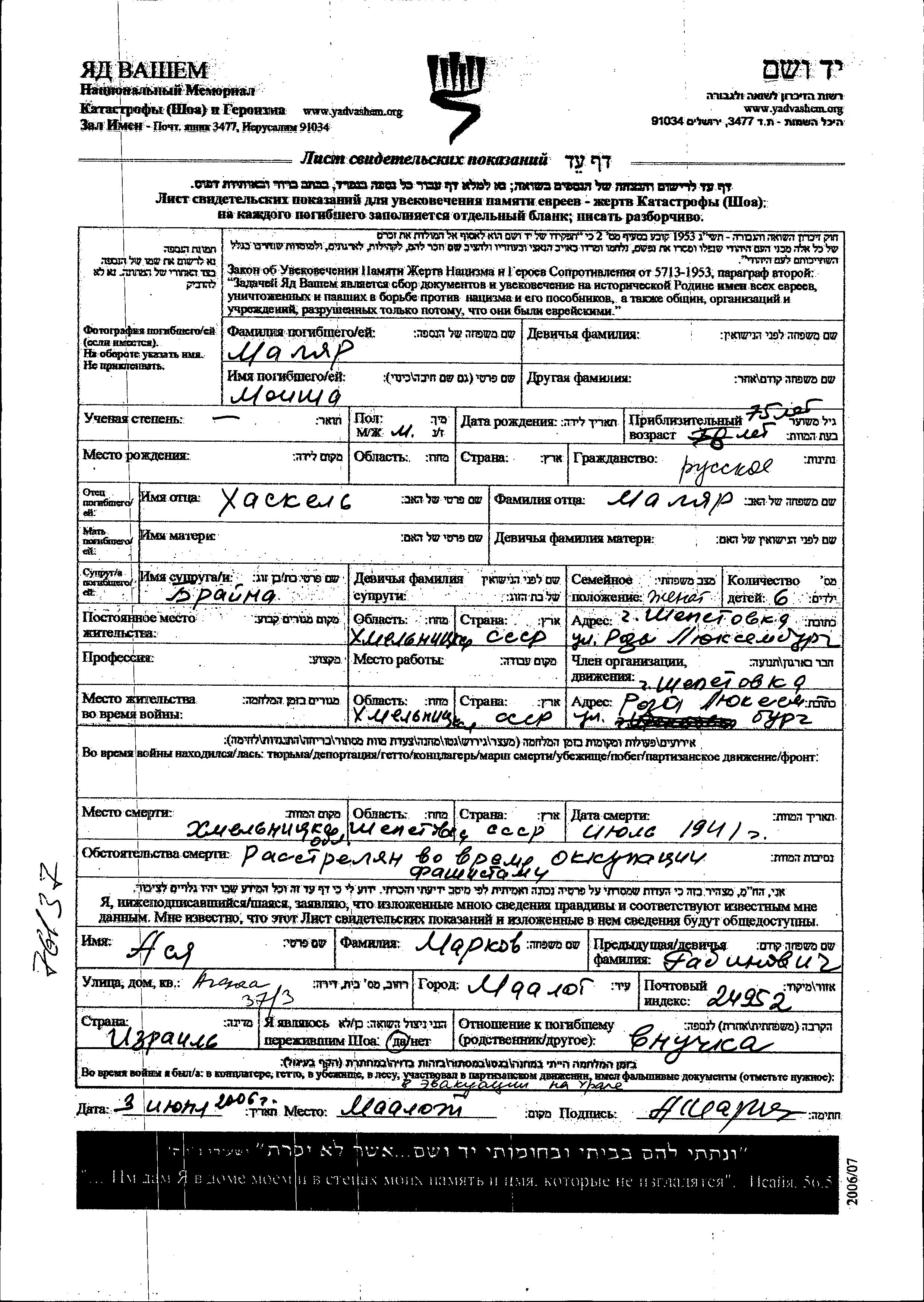 חיפוש שם מוסר דף העד. חיפוש לפי כל שם פרטי, כולל כינוי או שם חיבה