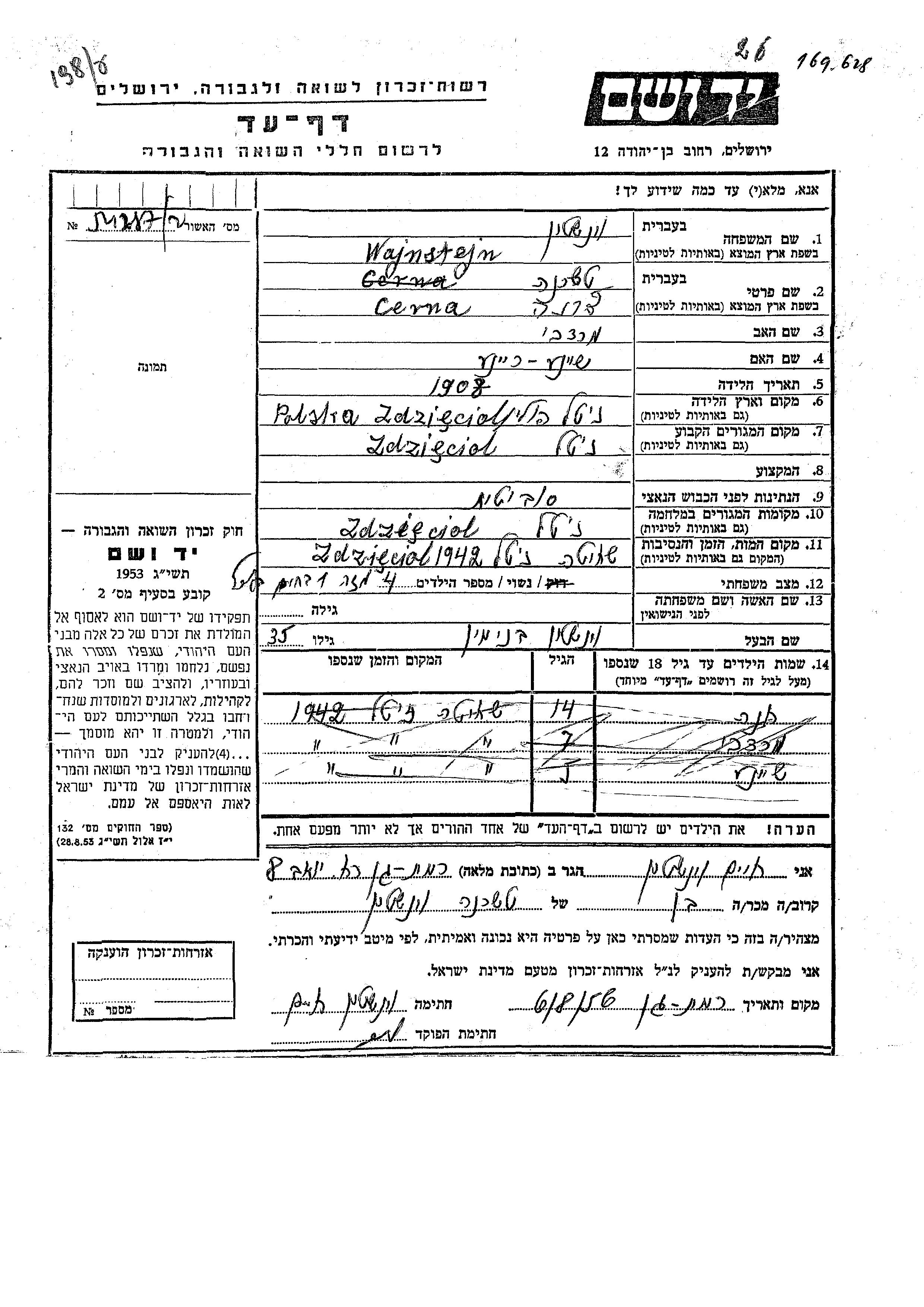 יד ושם - המפעל להנצחת השמות בדפי עד