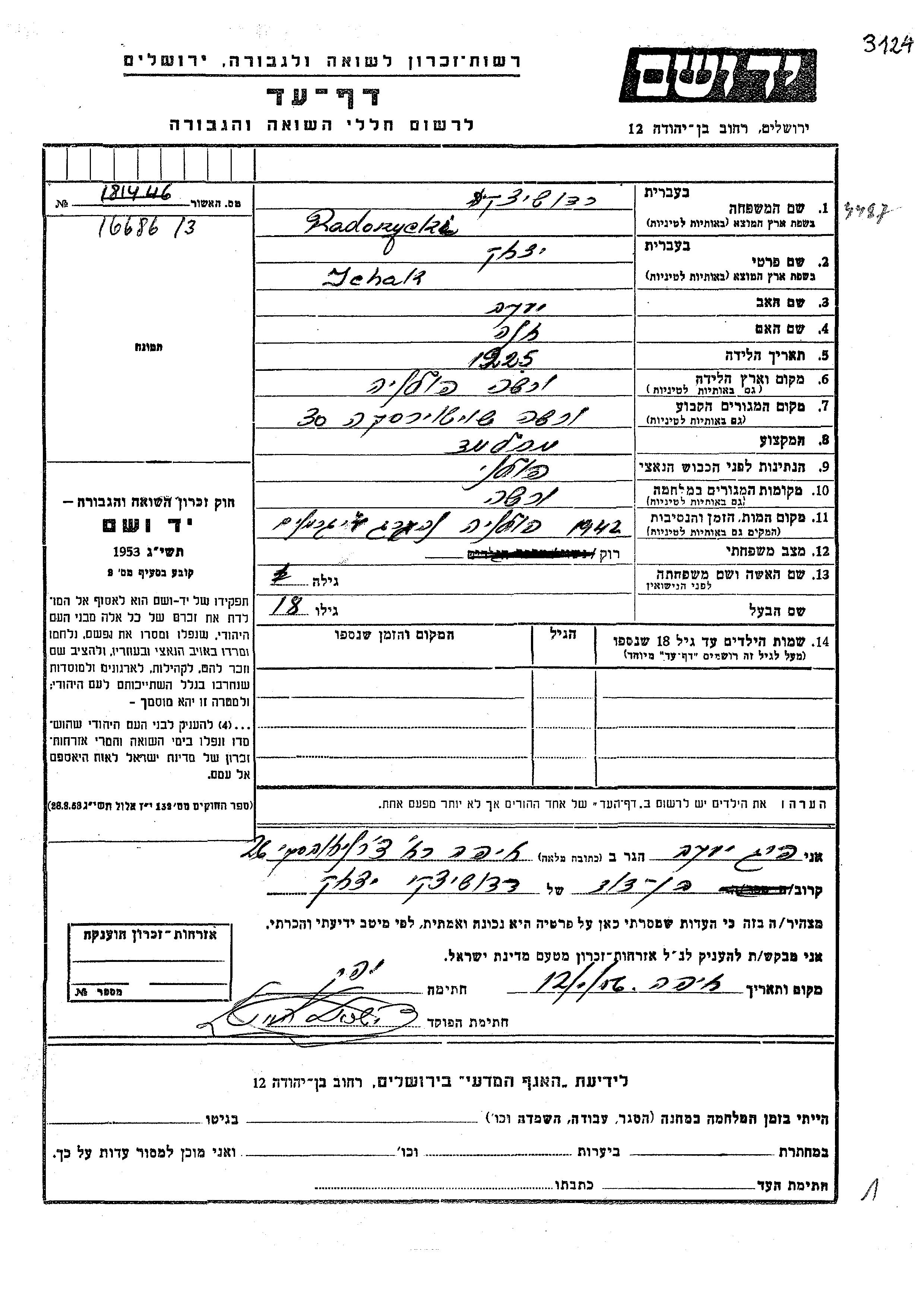 יד ושם - המפעל להנצחת השמות בדפי עד