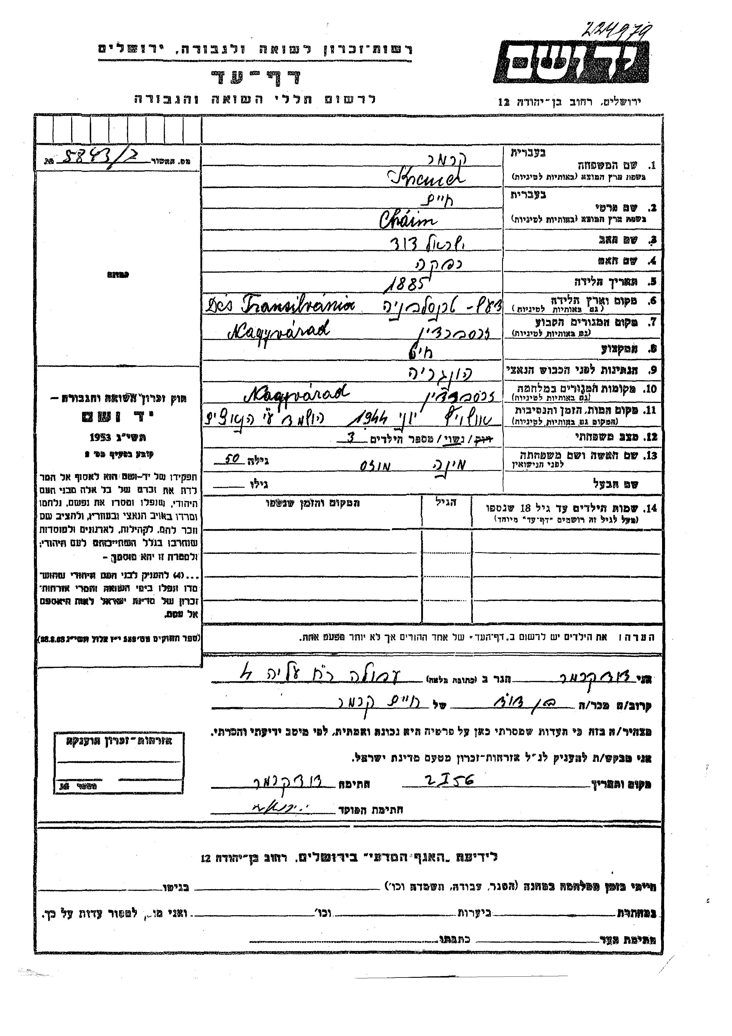 חיים נרצח בשואה. מקום המוות: Auschwitz שבפולין בשנת 06/1944.