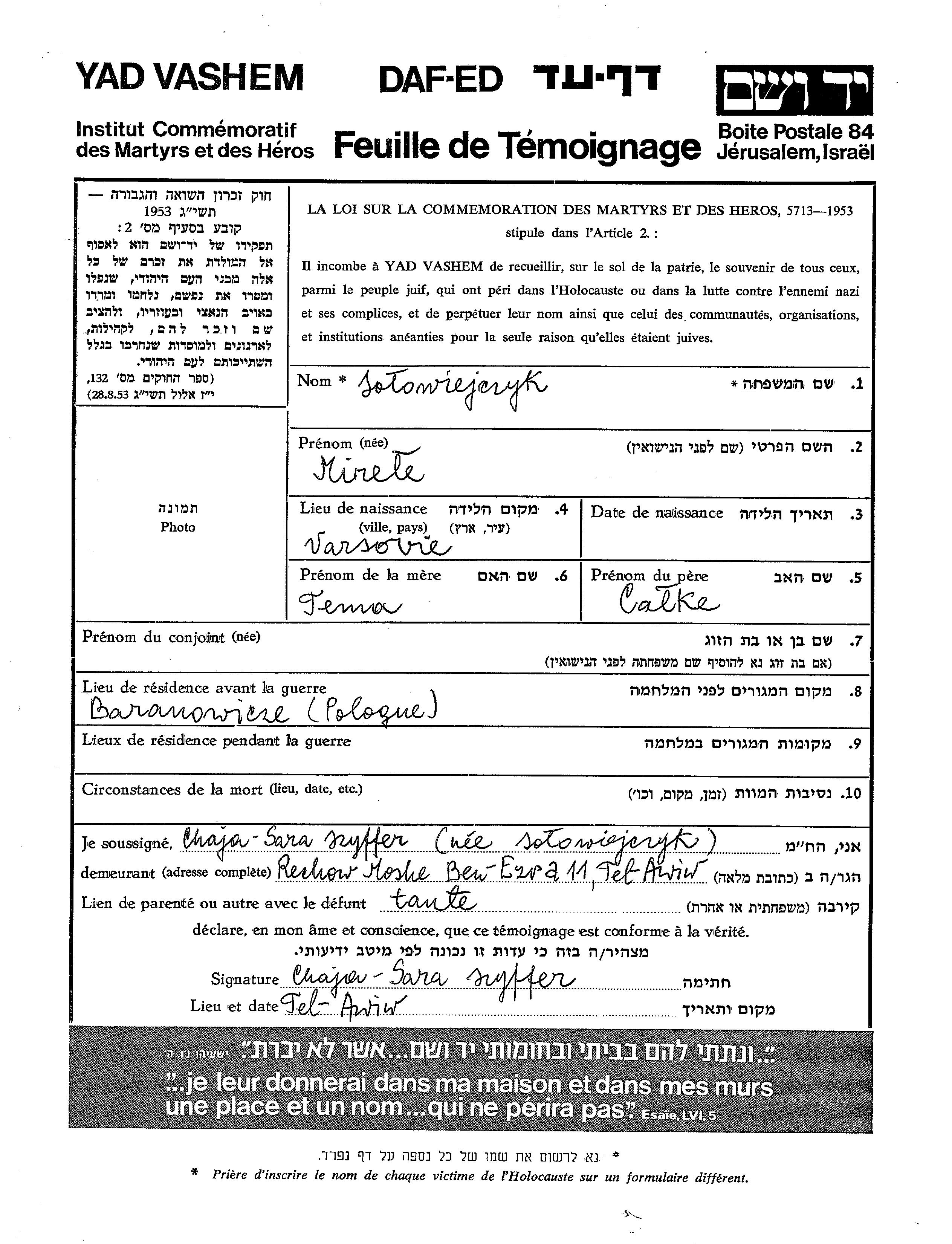 Solowiejczyk Mirele Baranowicze, פולין דף-עד