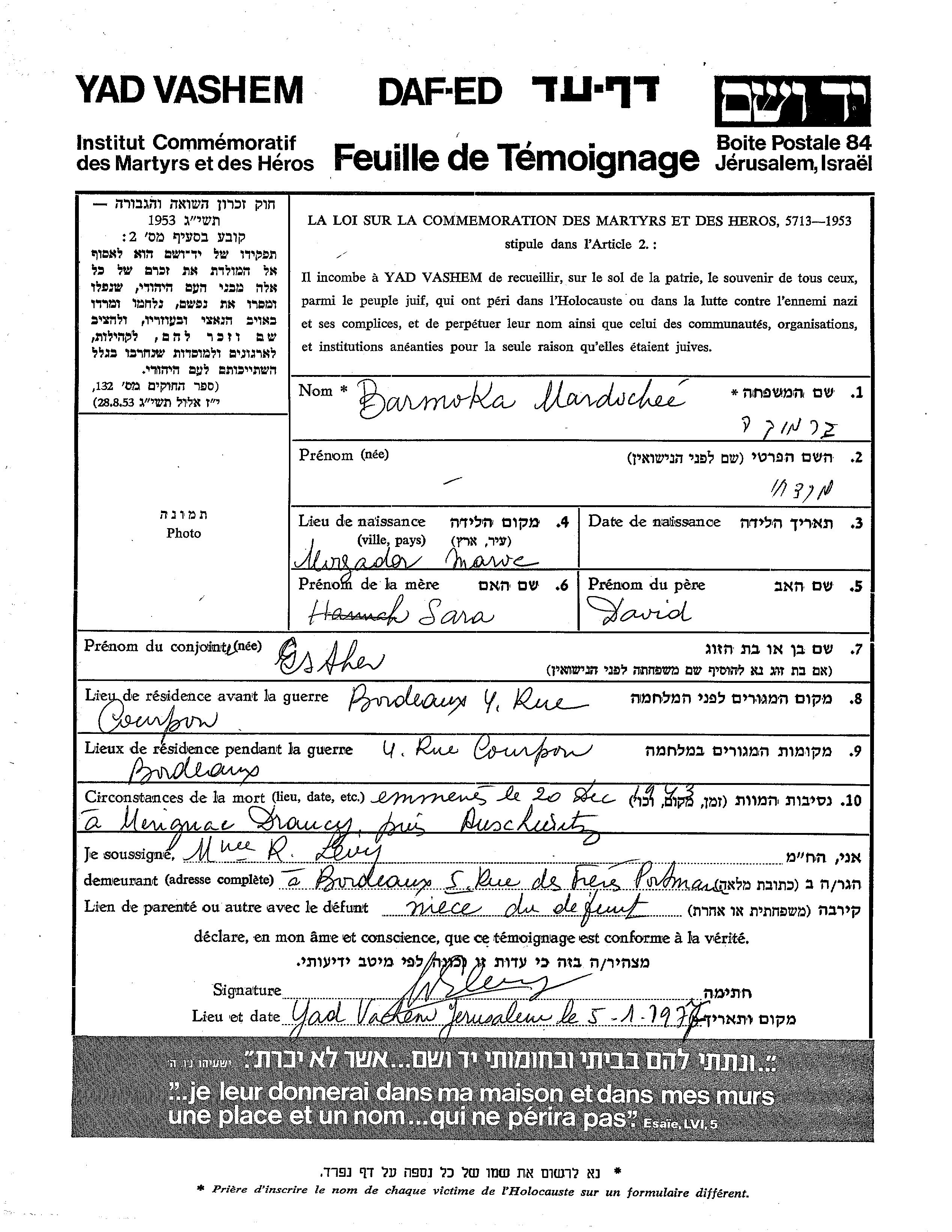ברמוקה Mardochee Bordeaux, צרפת דף-עד