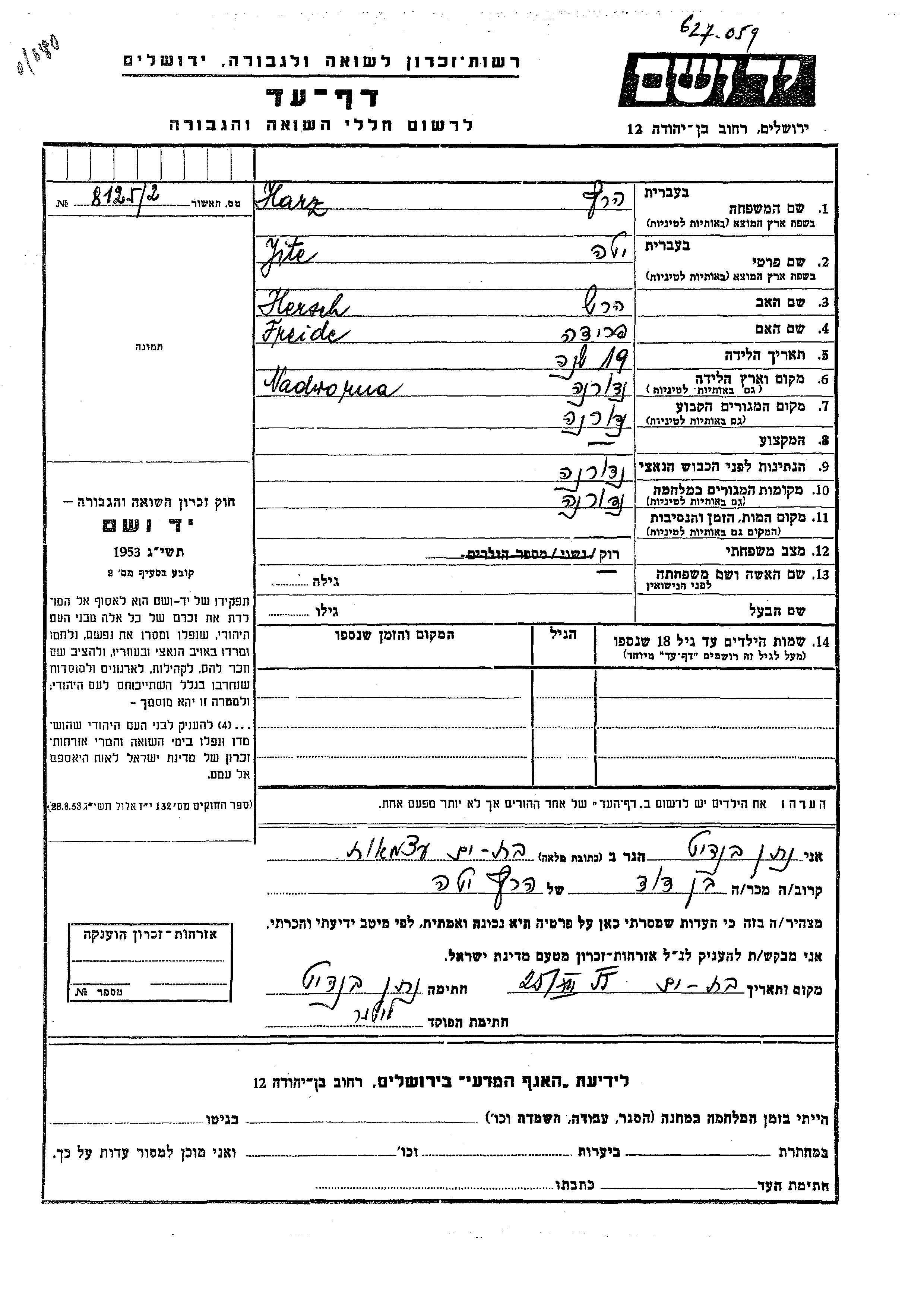 יד ושם - המפעל להנצחת השמות בדפי עד