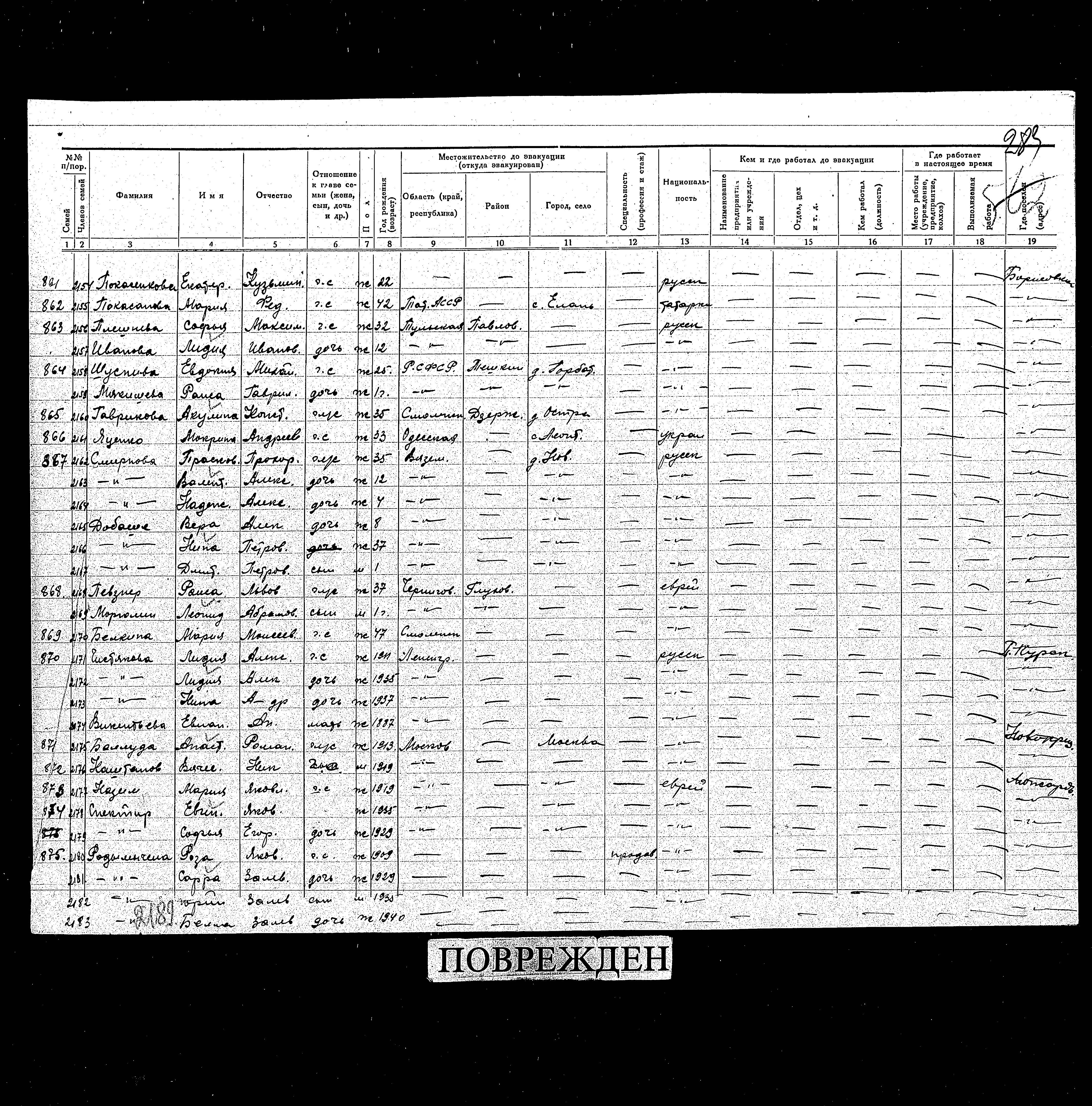 Belkina מריה Smolensk, רוסיה (ברה"מ) רשימת מפונים