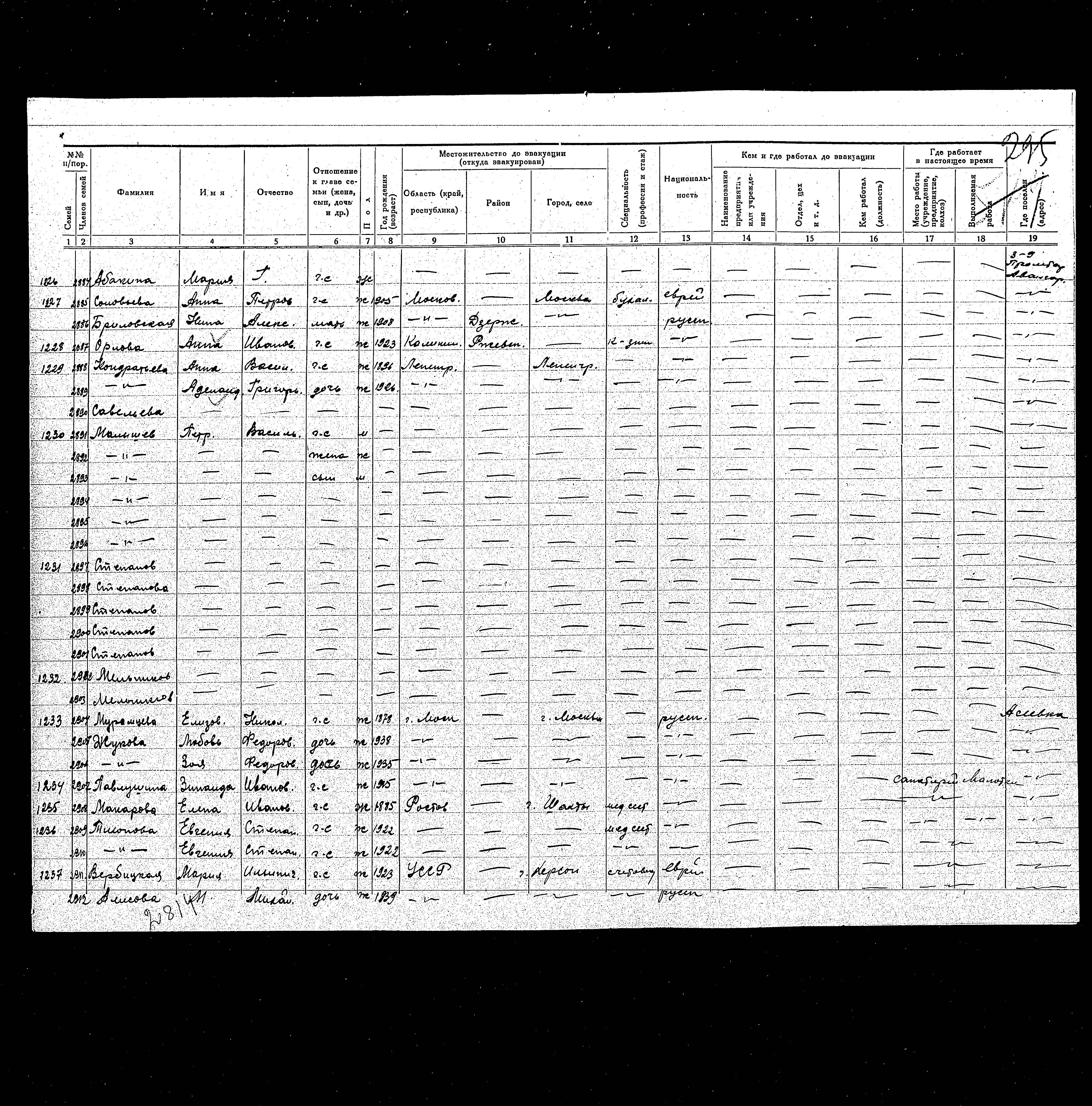 Alisova מ 1939 Kherson, אוקראינה (ברה"מ) רשימת מפונים