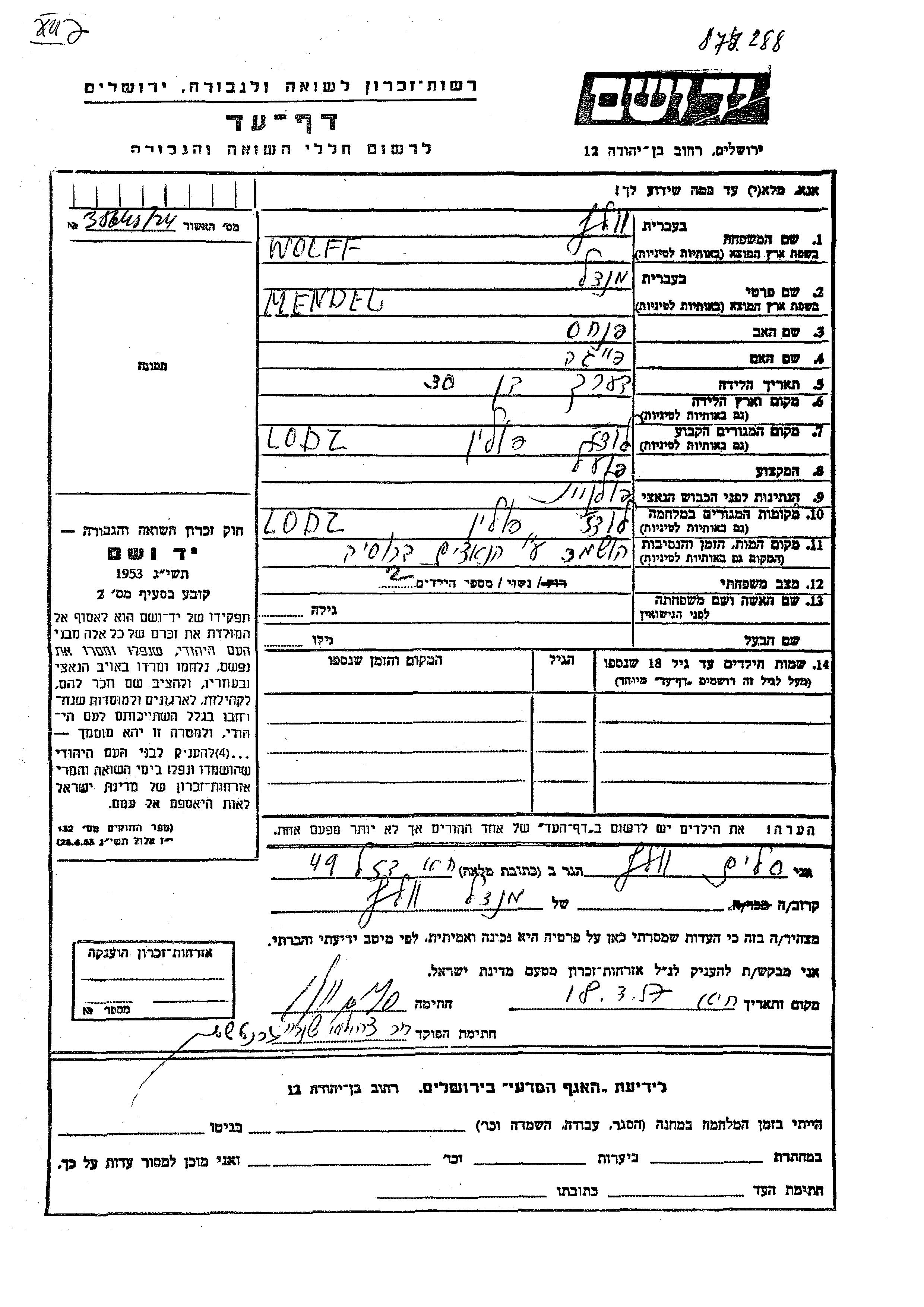 יד ושם - המפעל להנצחת השמות בדפי עד