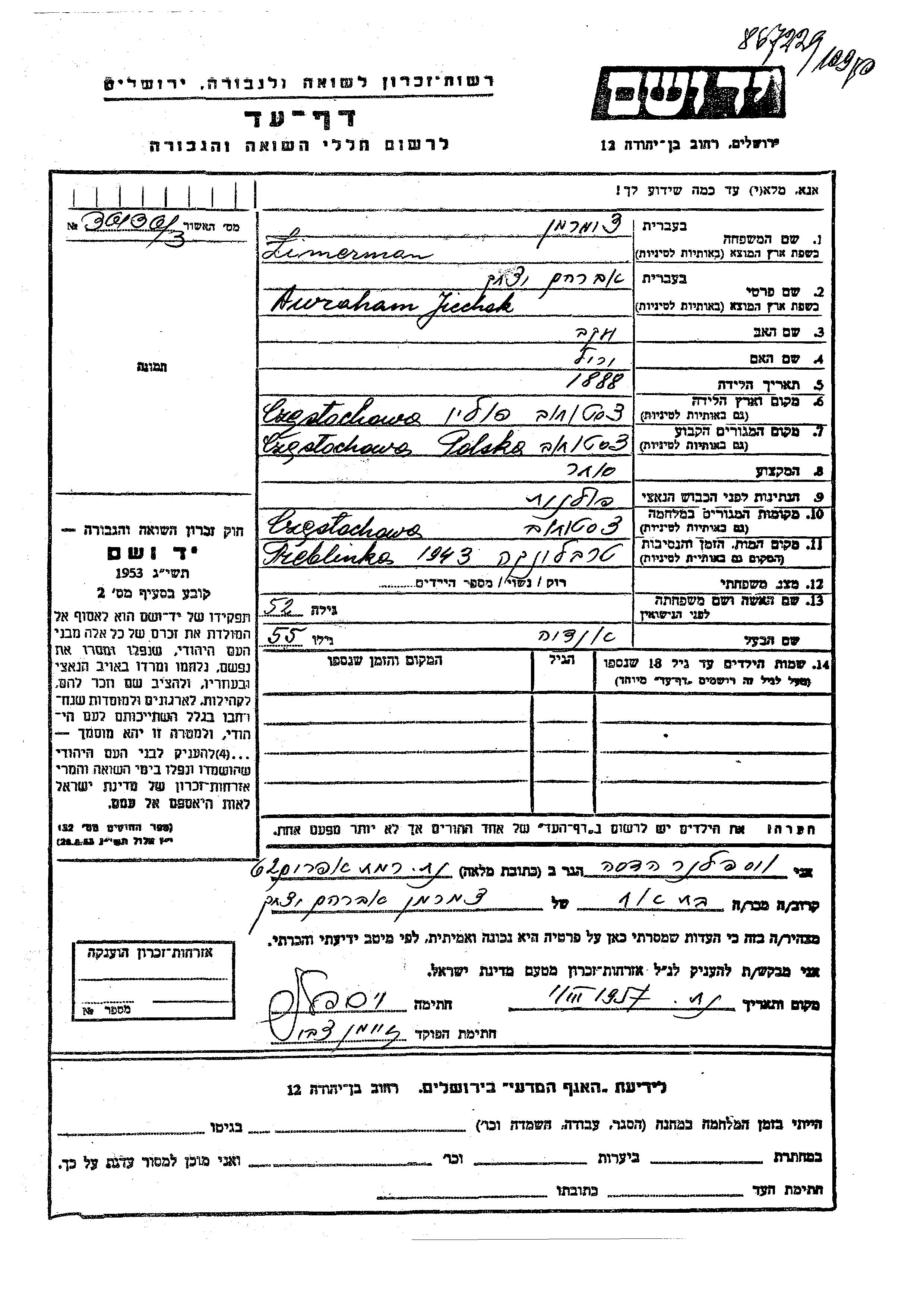 זימרמן צימרמן Awraham Jicchak 1888 Czestochowa, פולין דף-עד