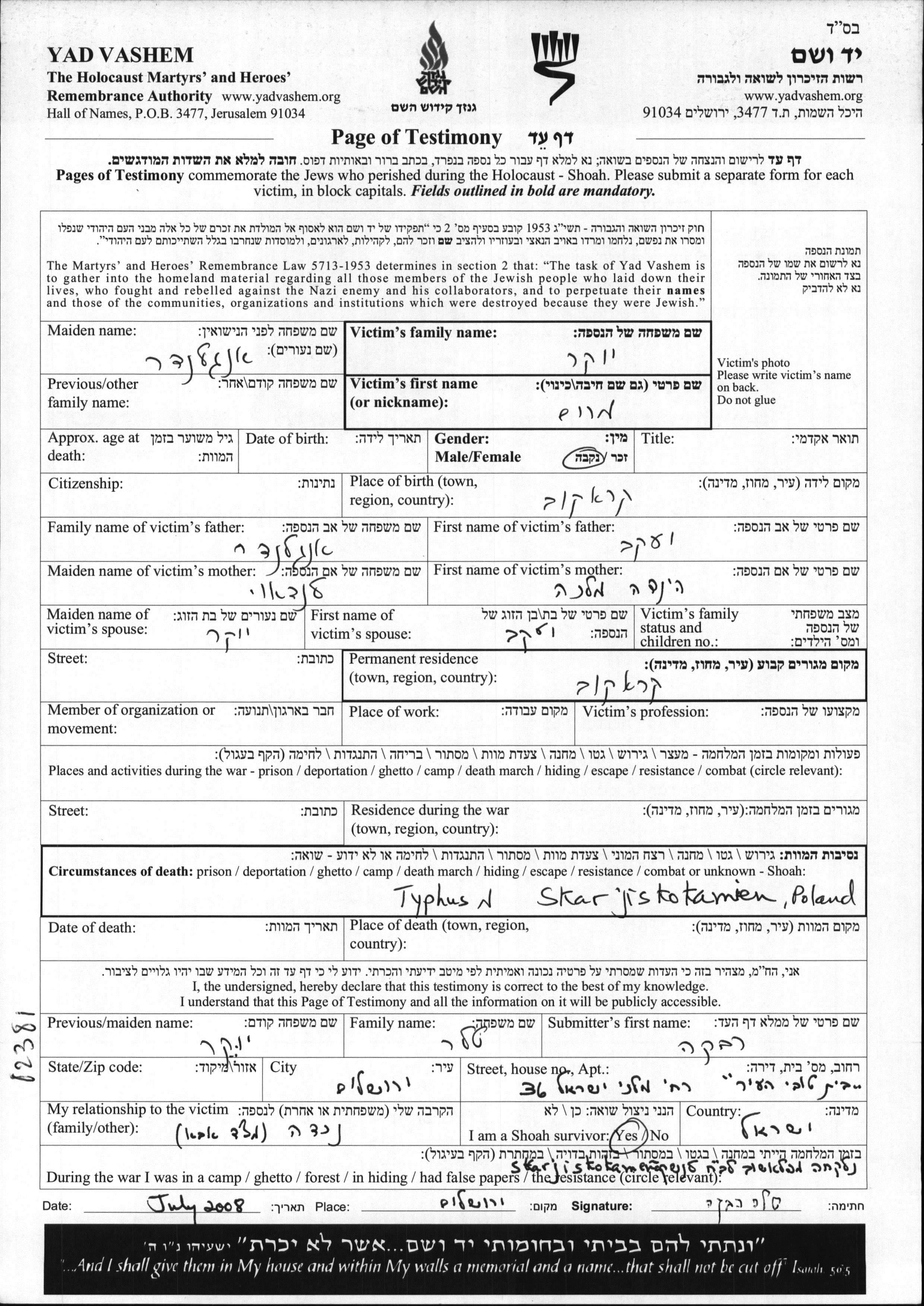 יד ושם - המפעל להנצחת השמות בדפי עד