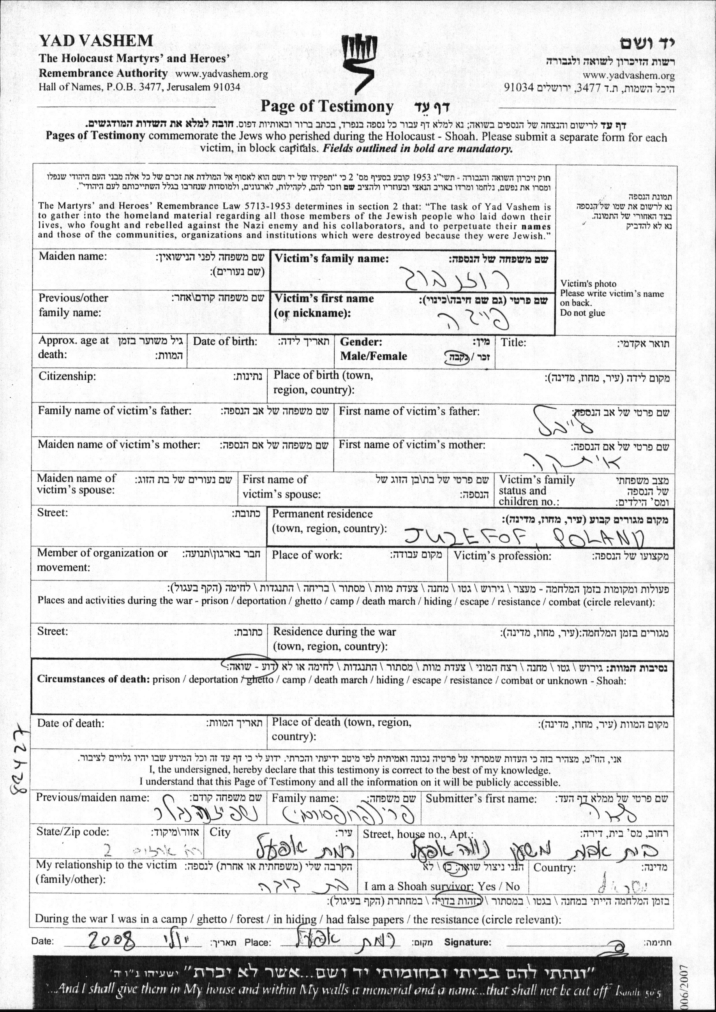 יד ושם - המפעל להנצחת השמות בדפי עד